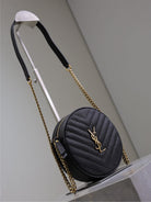 VINYLE SMALL ROUND BAG 17 IN BLACK CAVIAR LEATHER GOLD HARDWARE