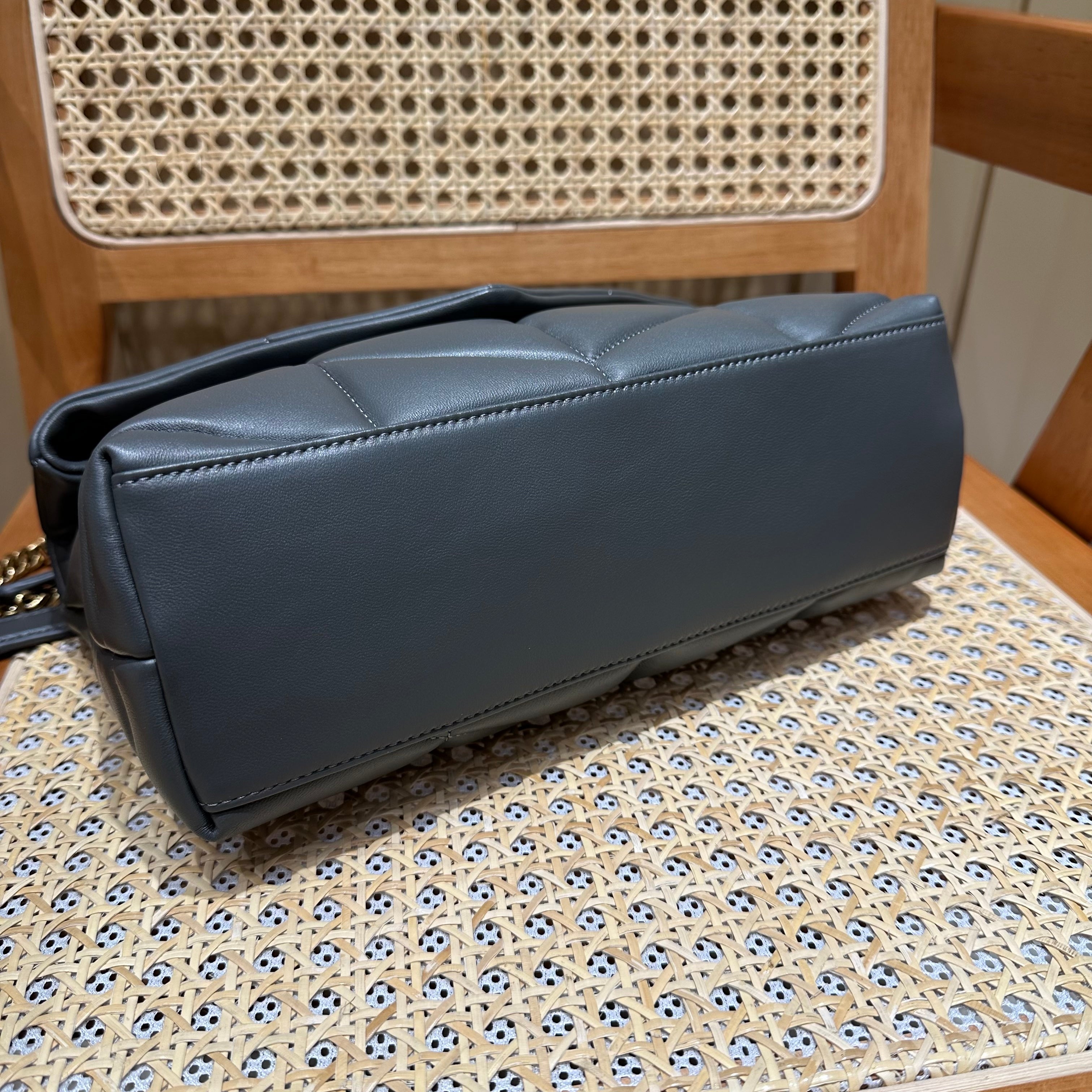 YSL Loulou Puffer Quilted Bag Gray Gold Lambskin 338800