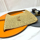 YSL OXALIS 37CM BEIGE RAFFIA TAN CALFSKIN