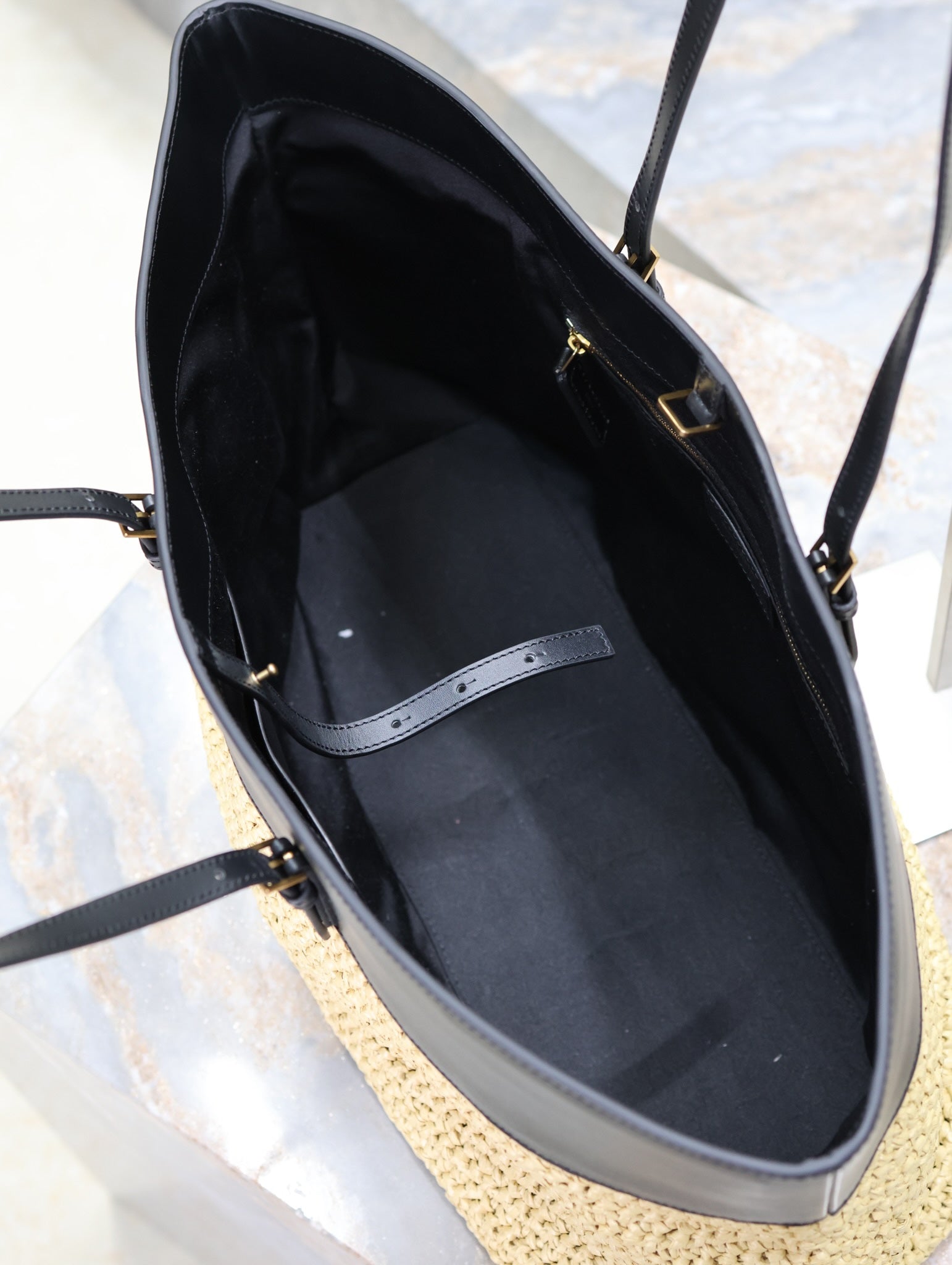 RIVE GAUCHE TOTE BAG 48 IN LIGHT YELLOW AND BLACK TRIM RAFFIA