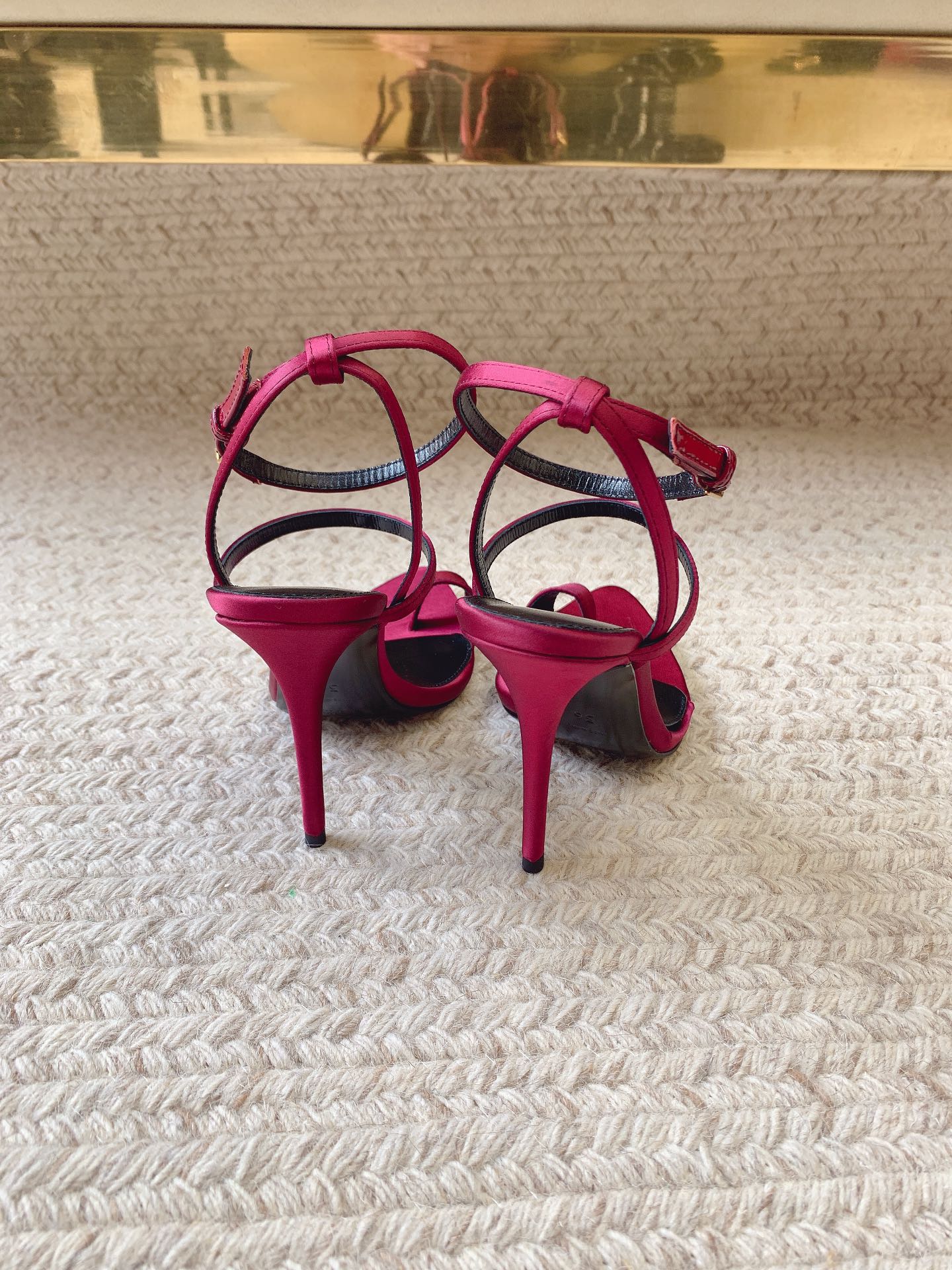 STRAPPY HIGH HEEL SANDALS IN PINK SILK