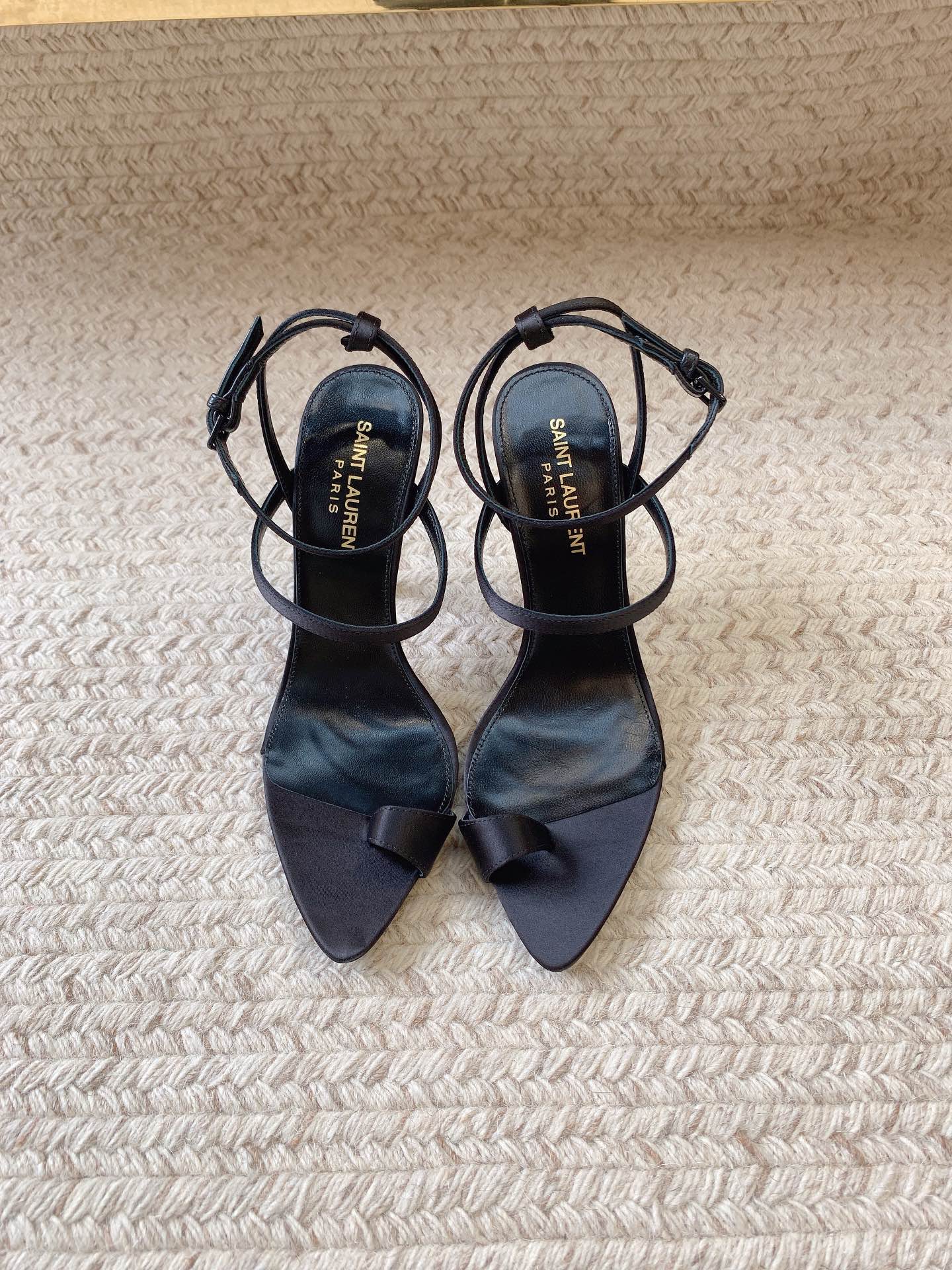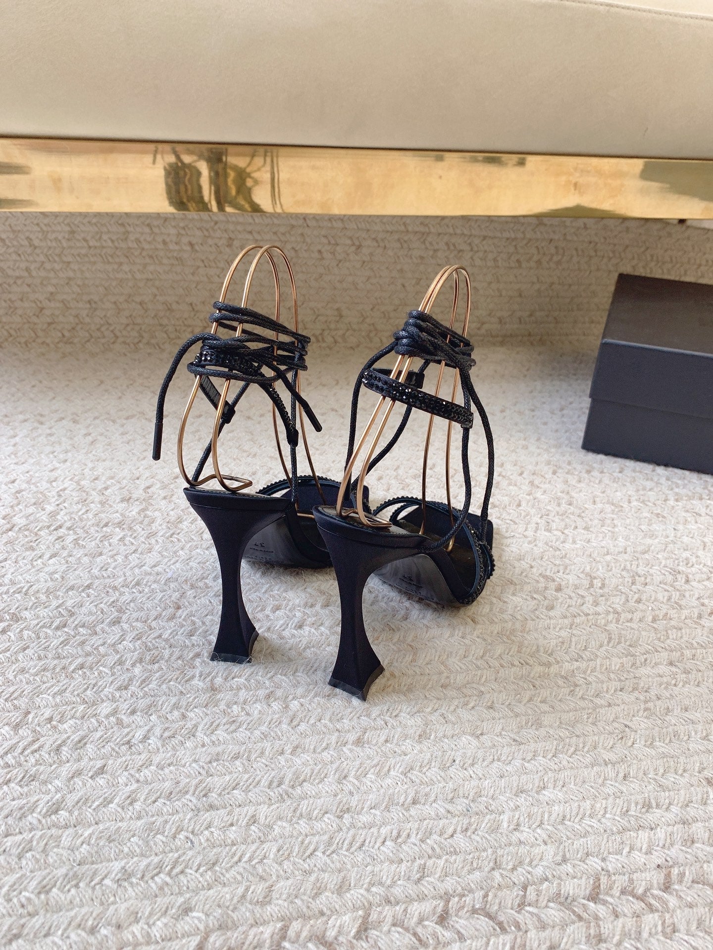 STRAPPY HIGH HEEL SANDALS IN BLACK SILK
