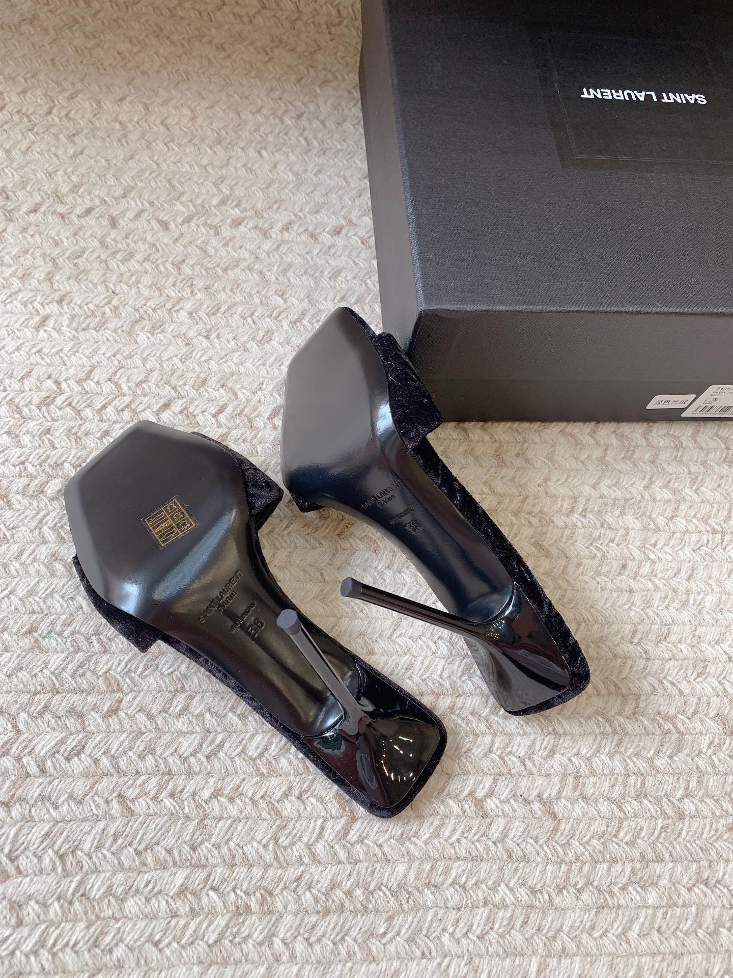 HIGH HEEL SLIDES IN PURPLE VELVET