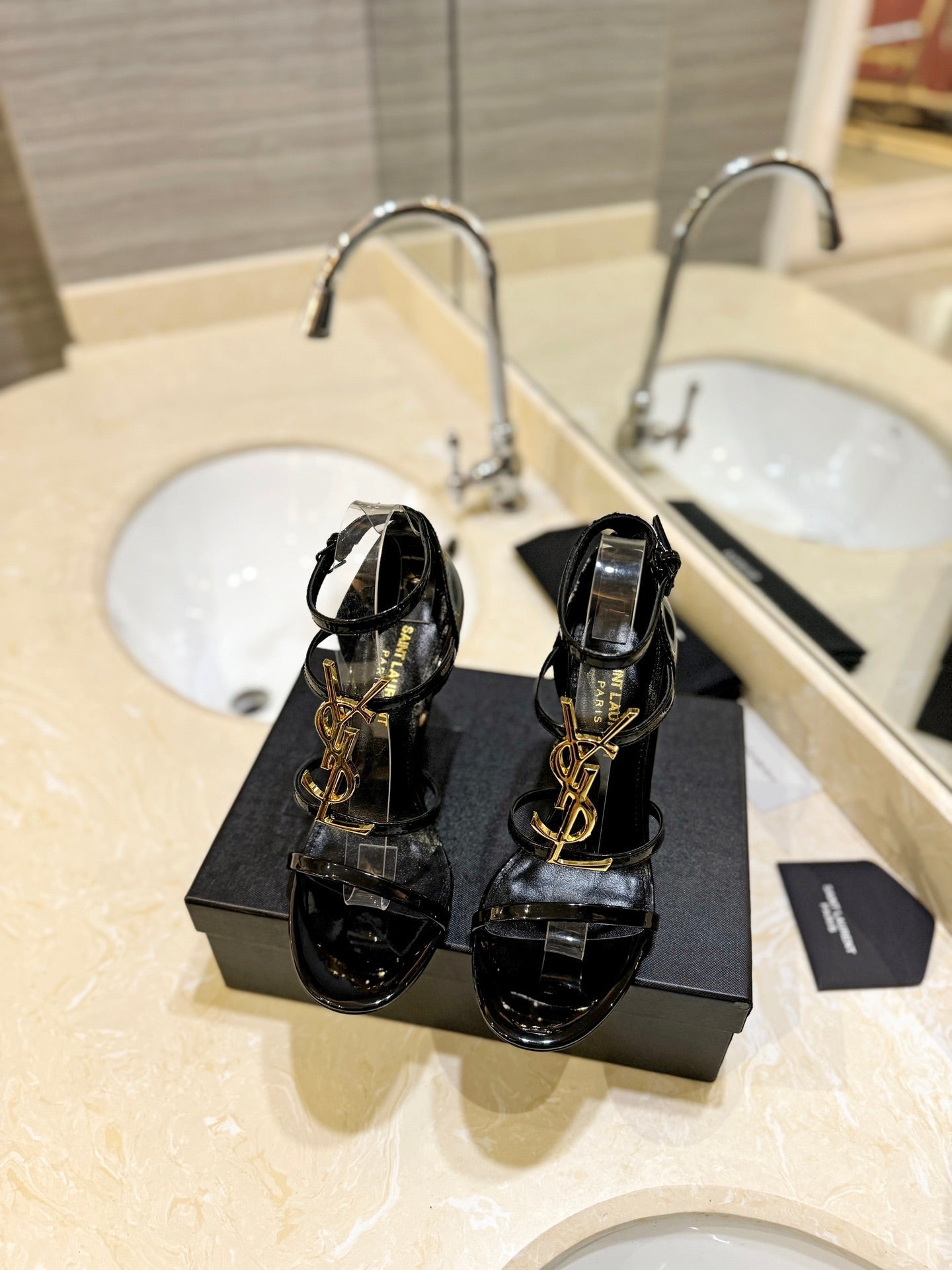 SL Babylone Sandal Heeled 10cm Black Patent Calfskin