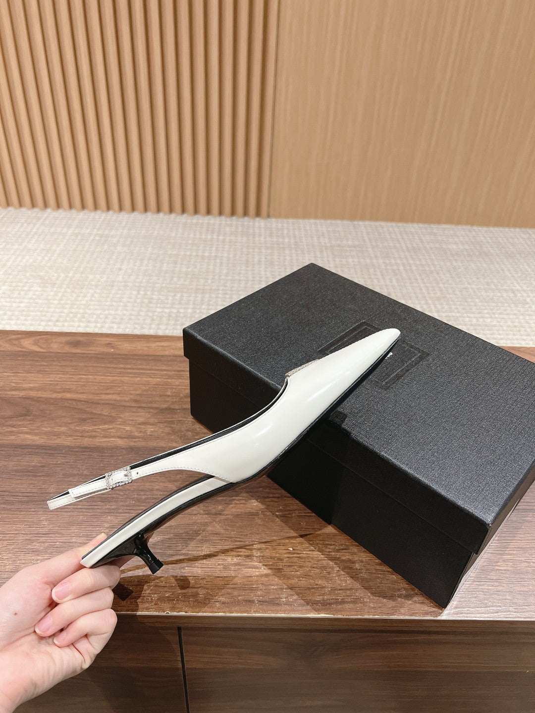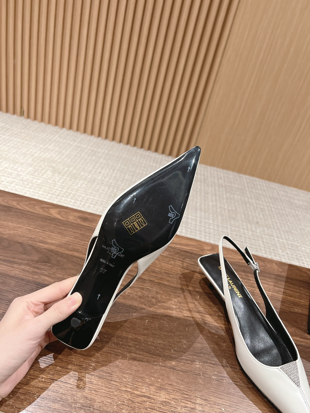 SL TRIANGLE HEELED SLINGBACKS WHITE CALFSKIN