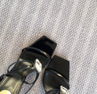 HIGH MULES WITH GEM IN BLACK GLOSSY CALFSKIN