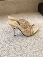 LA 16 HEELED MULES ATTACHED RHINESTONES IN CREAM MESH