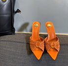 LOLA HIGH MULES IN TANGELO ORANGE SMOOTH LAMBSKIN AND DRAPED JERSEY