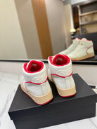 MID-TOP SNEAKERS IN WHITE AND RED TRIM PERFORATED LAMBSKIN