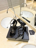 SL CASSANDRA HEELED SANDALS BLACK POLISHED CALFSKIN