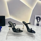 SL CRYSTAL BUCKLE HIGH HEELS BLACK CALFSKIN