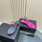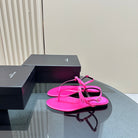 SL CRYSTAL T-STRAP FLAT SANDAL BRIGHT PINK SATIN