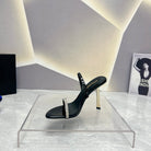 SL CRYSTAL THIN BELT HIGH HEELS BLACK CALFSKIN