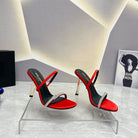 SL CRYSTAL THIN BELT HIGH HEELS RED SATIN