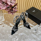 SL ONE-STRAP RHINESTONE BLACK SATIN