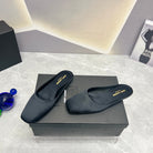 SL SQUARE TOE FLAT MULES BLACK SATIN