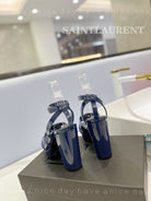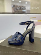 SL TRIBUTE FLATFORM SANDALS GLOSSY NAVY CALFSKIN