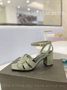 SL TRIBUTE SANDAL GLOSSY SAGE CALFSKIN
