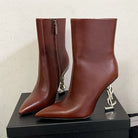 YSL 2025 Logo Metal Heel Ankle Boot Brown Cowhide 575004