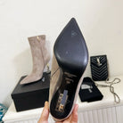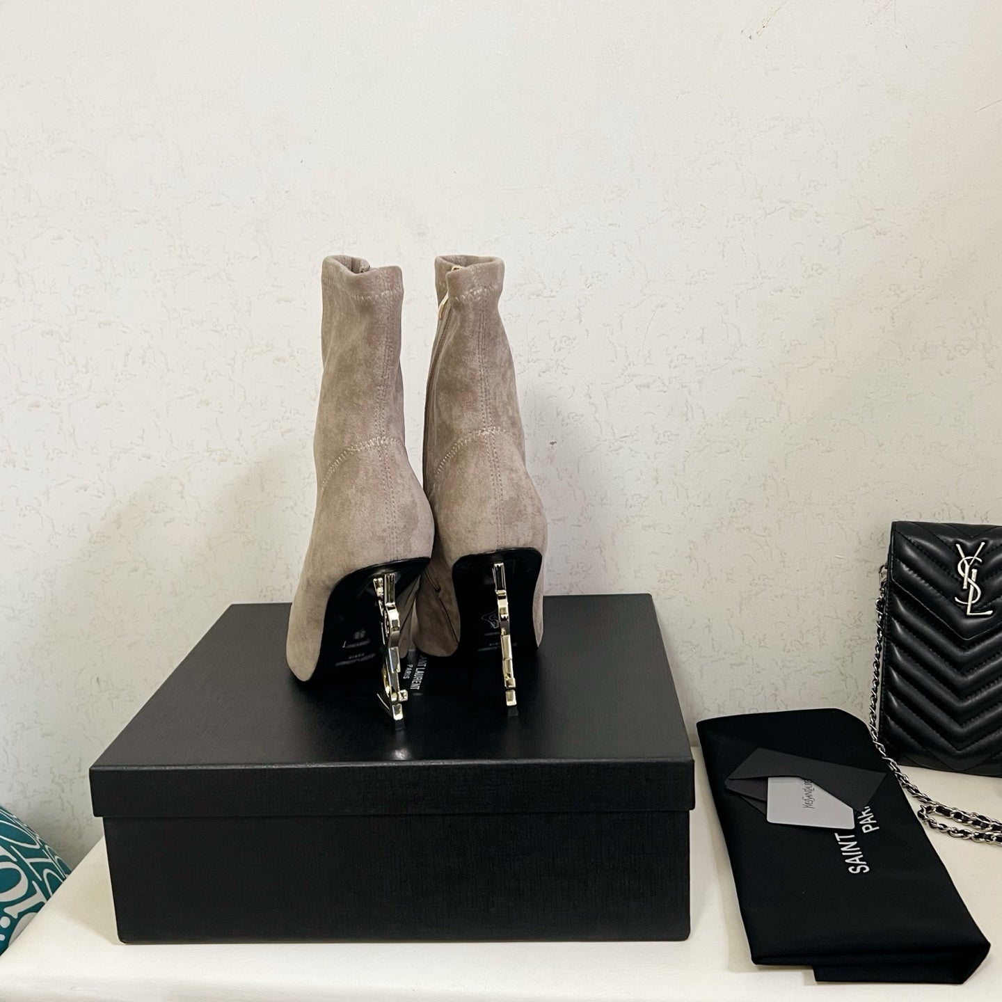 YSL 2025 Opyum 110mm Heel Ankle Boot Beige Suede 575007