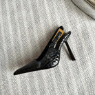 LEE SLINGBACK PUMPS 105 IN BLACK CROCODILE-EMBOSSED LEATHER