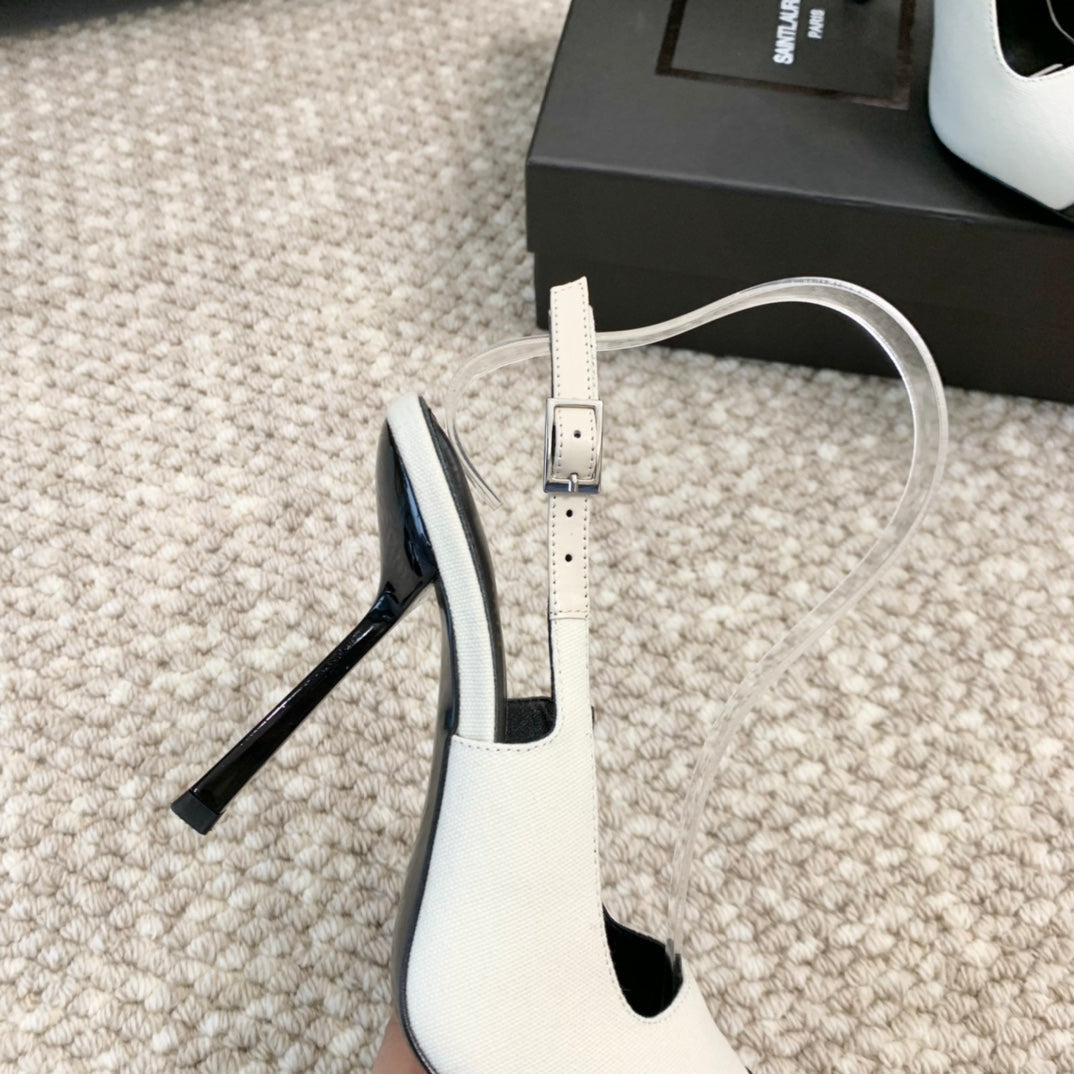 SL TRIANGLE HEELED SLINGBACKS WHITE CALFSKIN