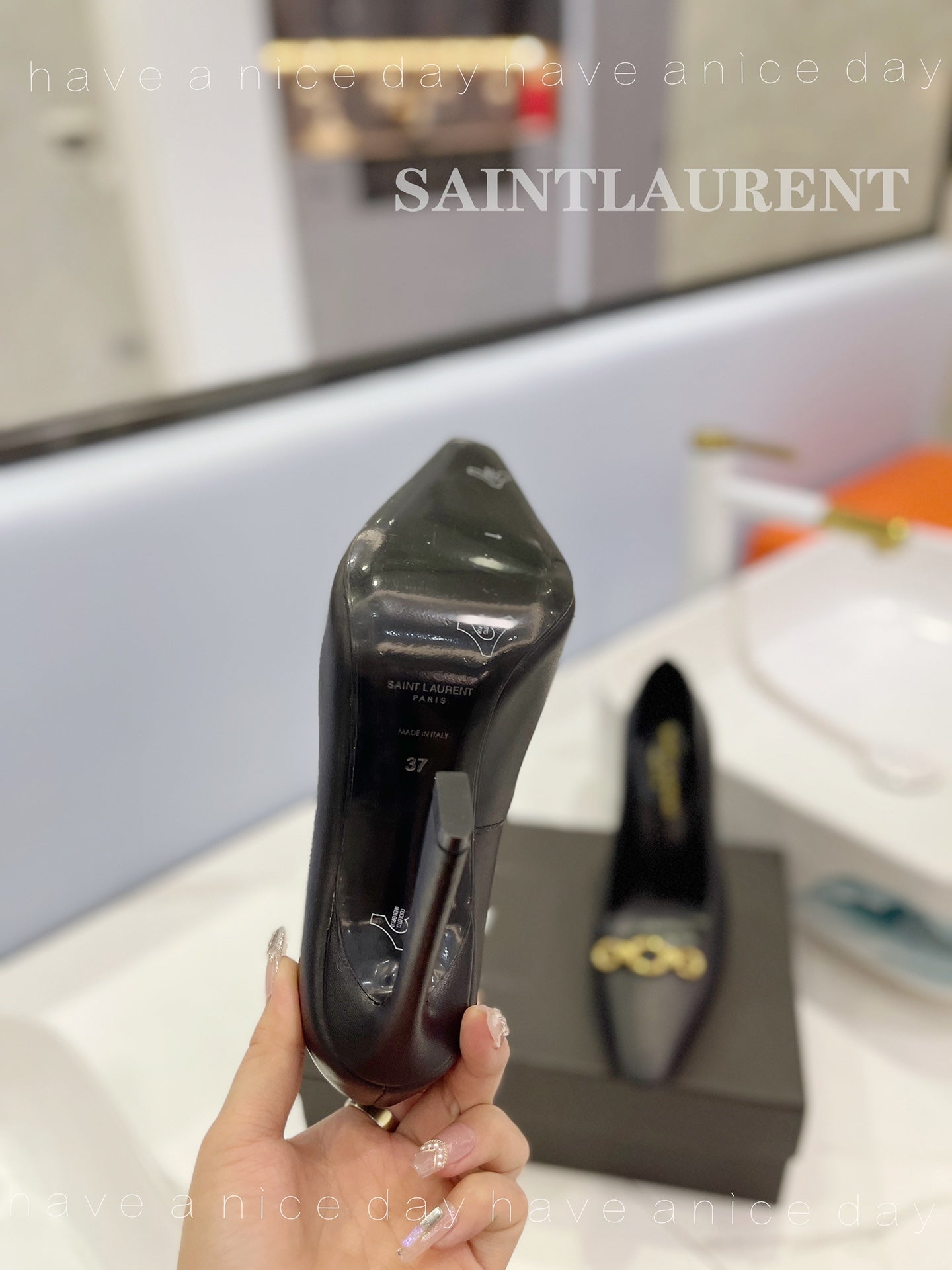 SL SILVANA CHAIN PUMPS GLOSSY BLACK CALFSKIN