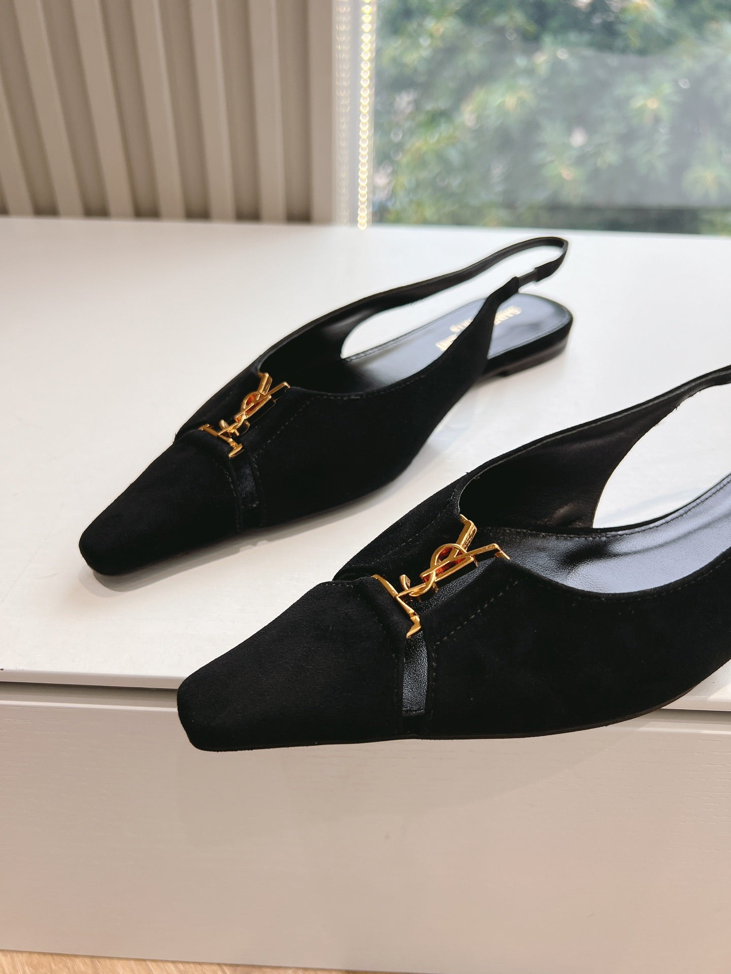 SL BABYLONE SLINGBACK FLAT BLACK SUEDE
