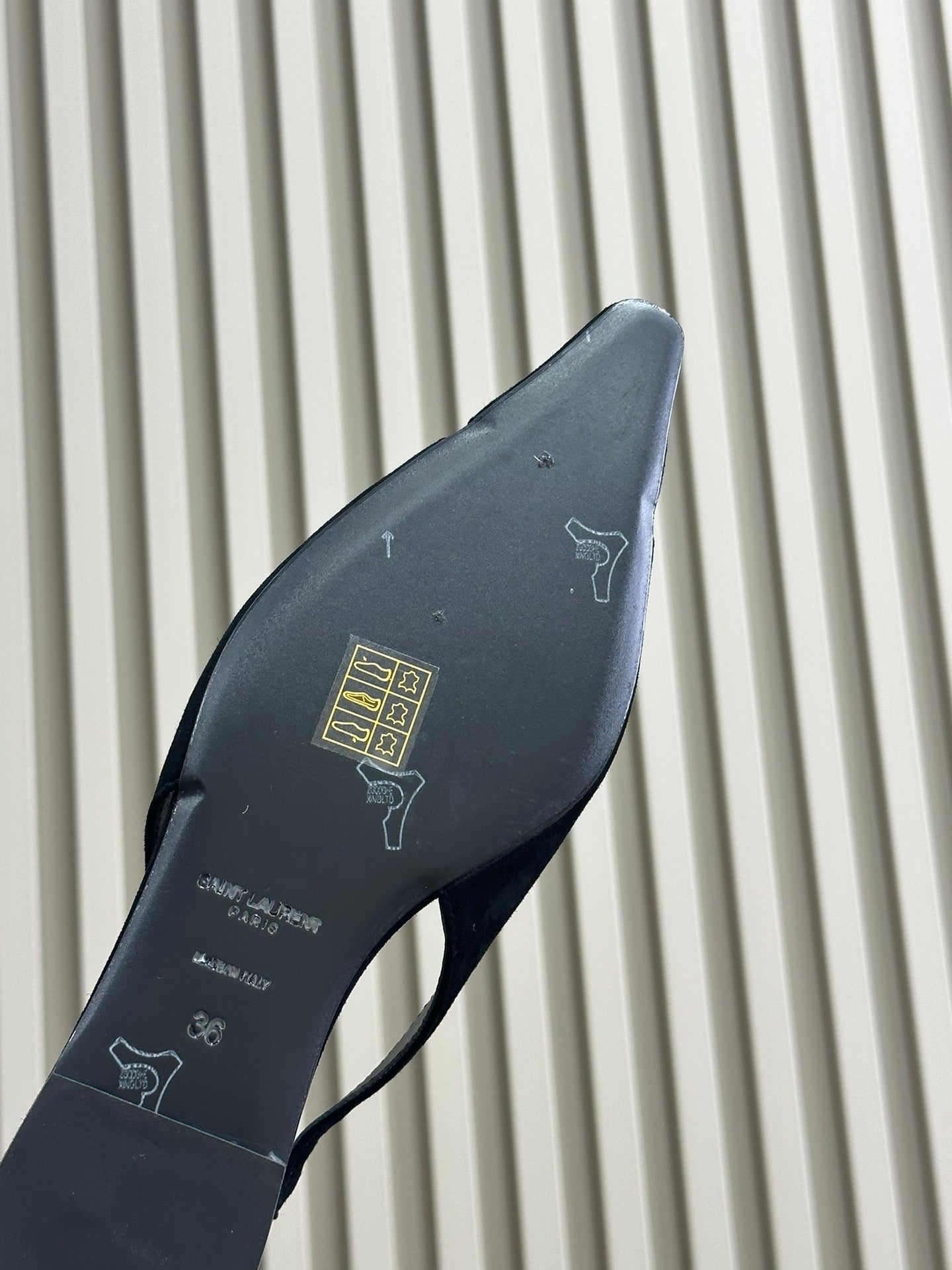 SL BABYLONE SLINGBACK FLAT BLACK SATIN