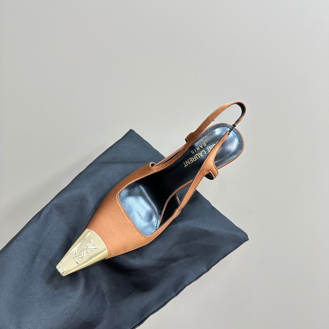 SL FANNY SLINGBACK PUMPS CHAMPAGNE SATIN
