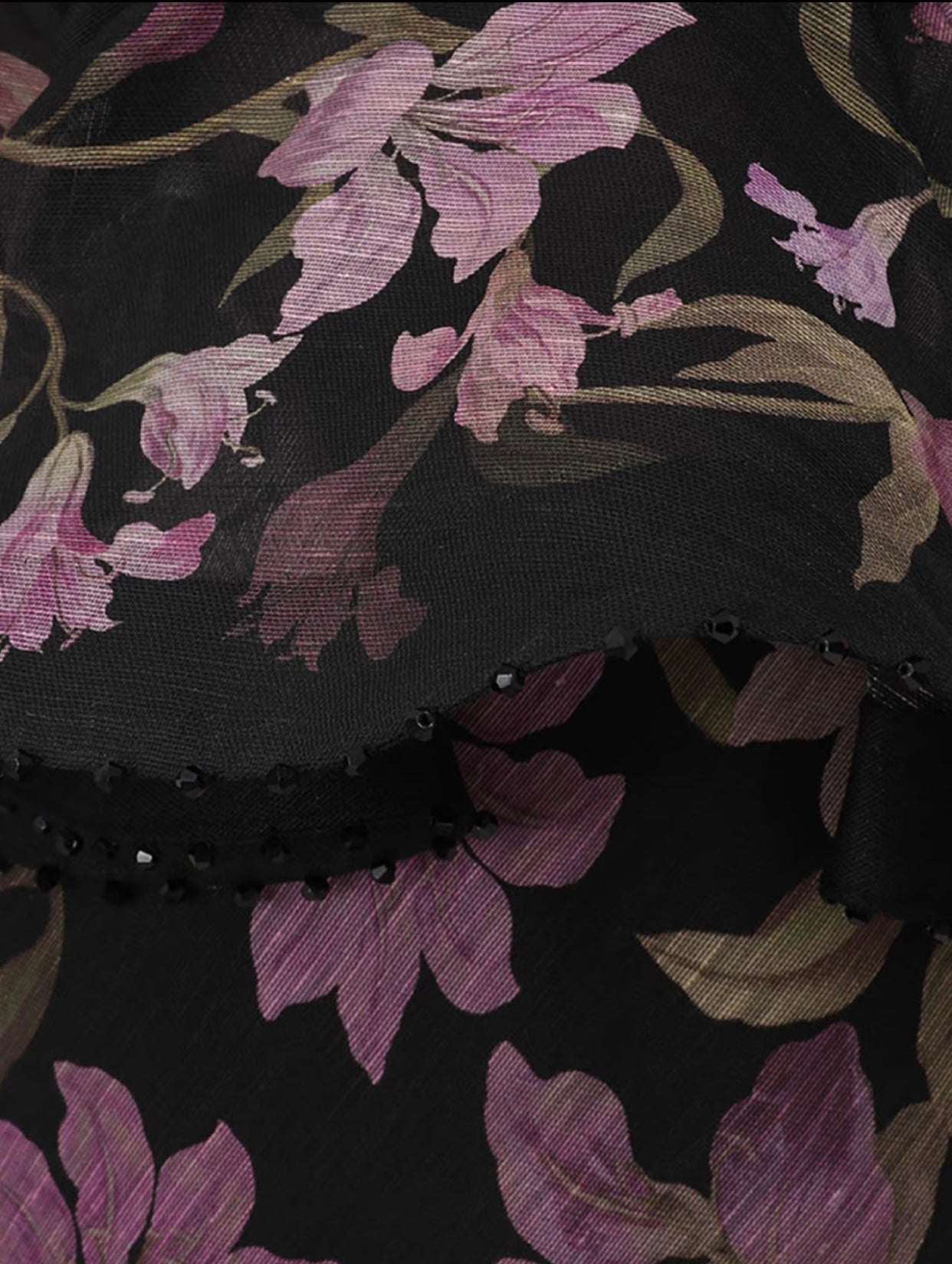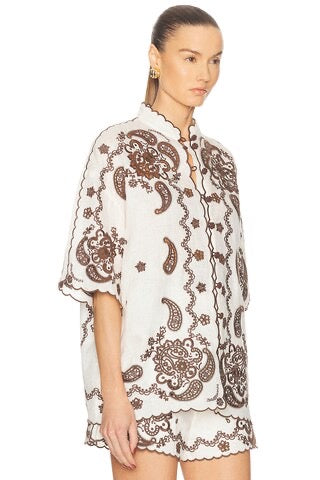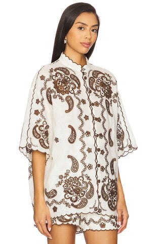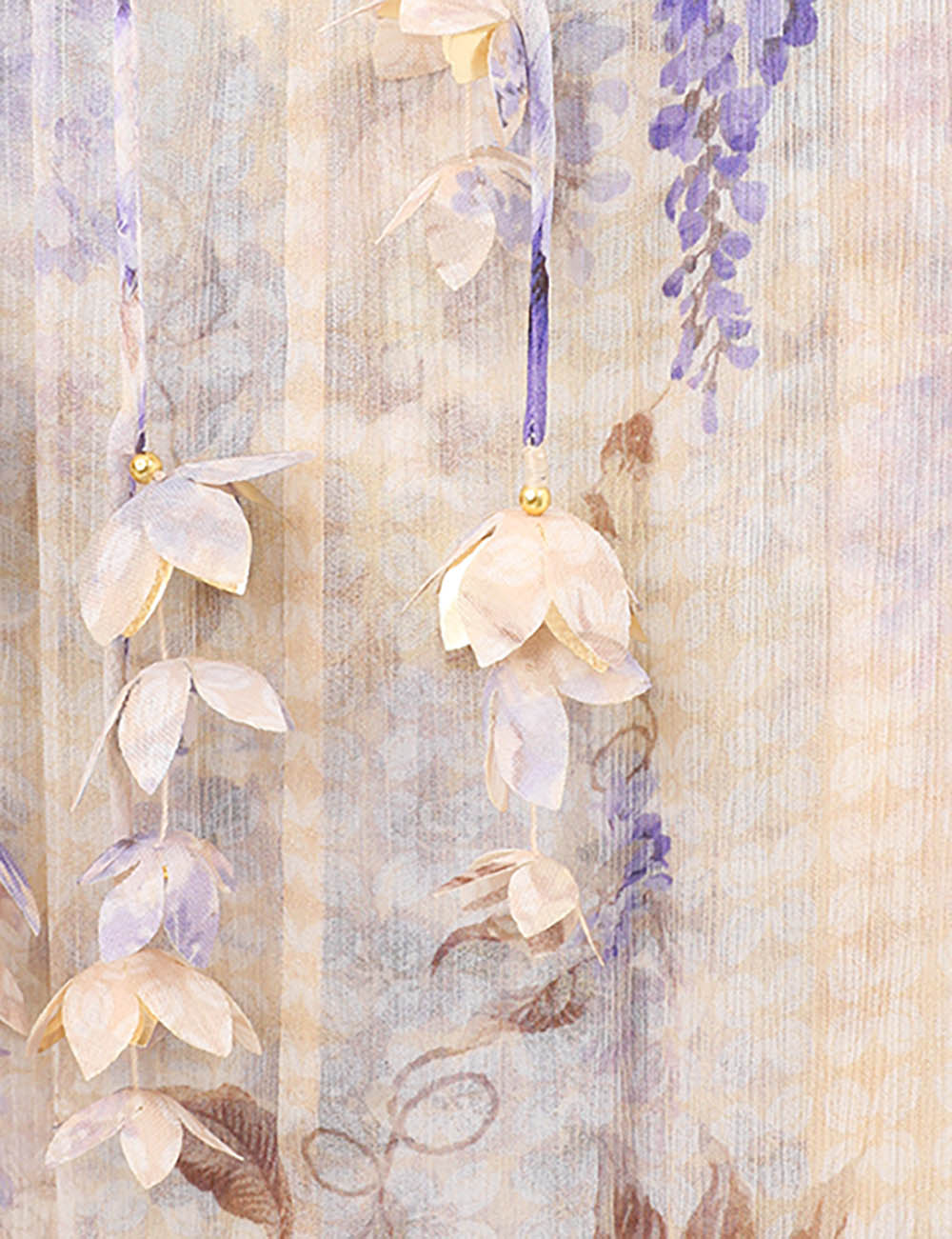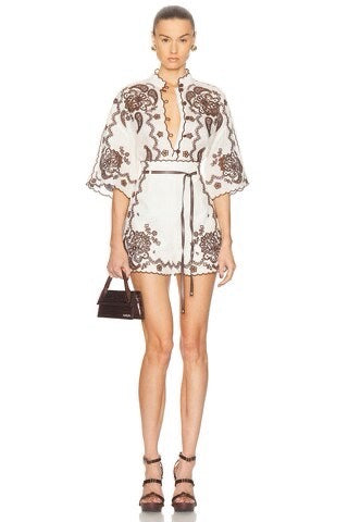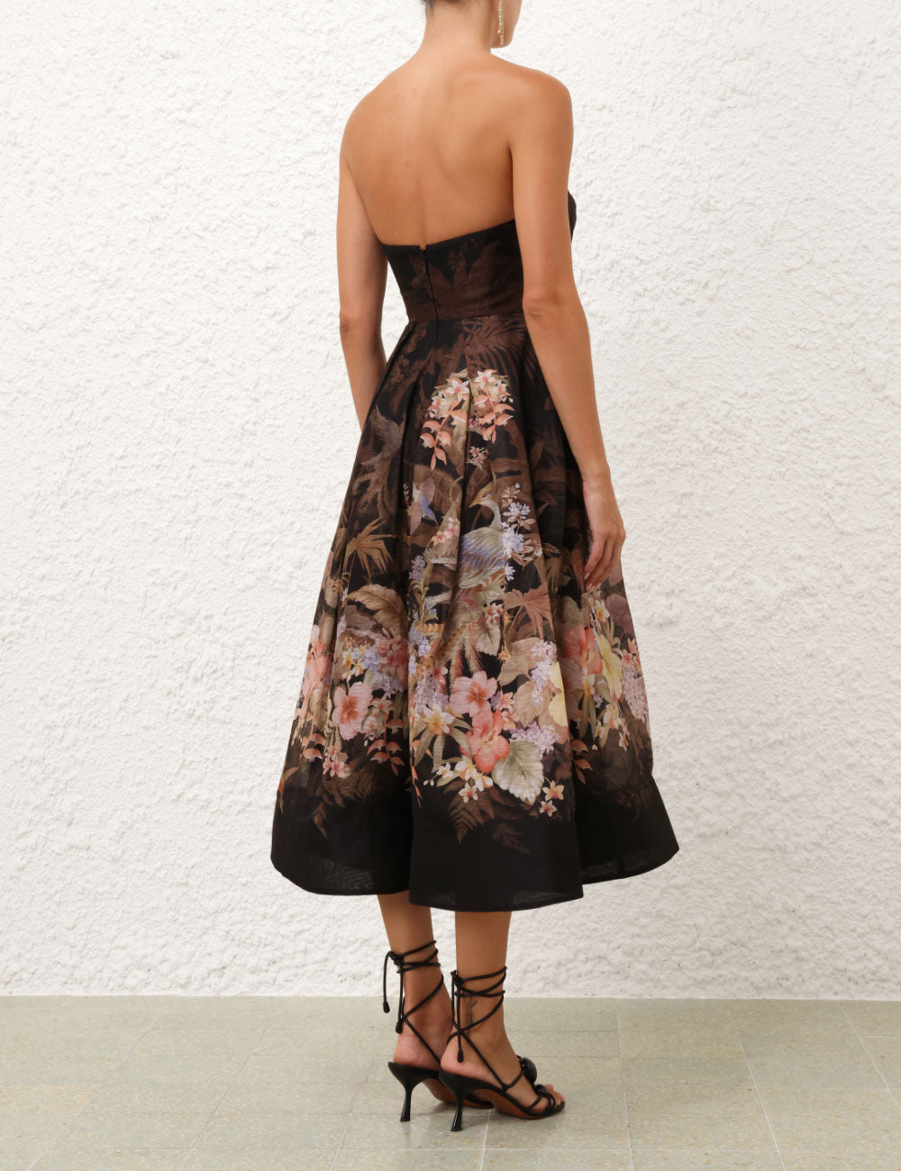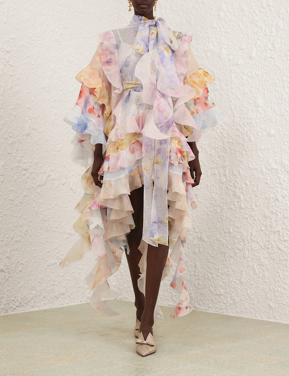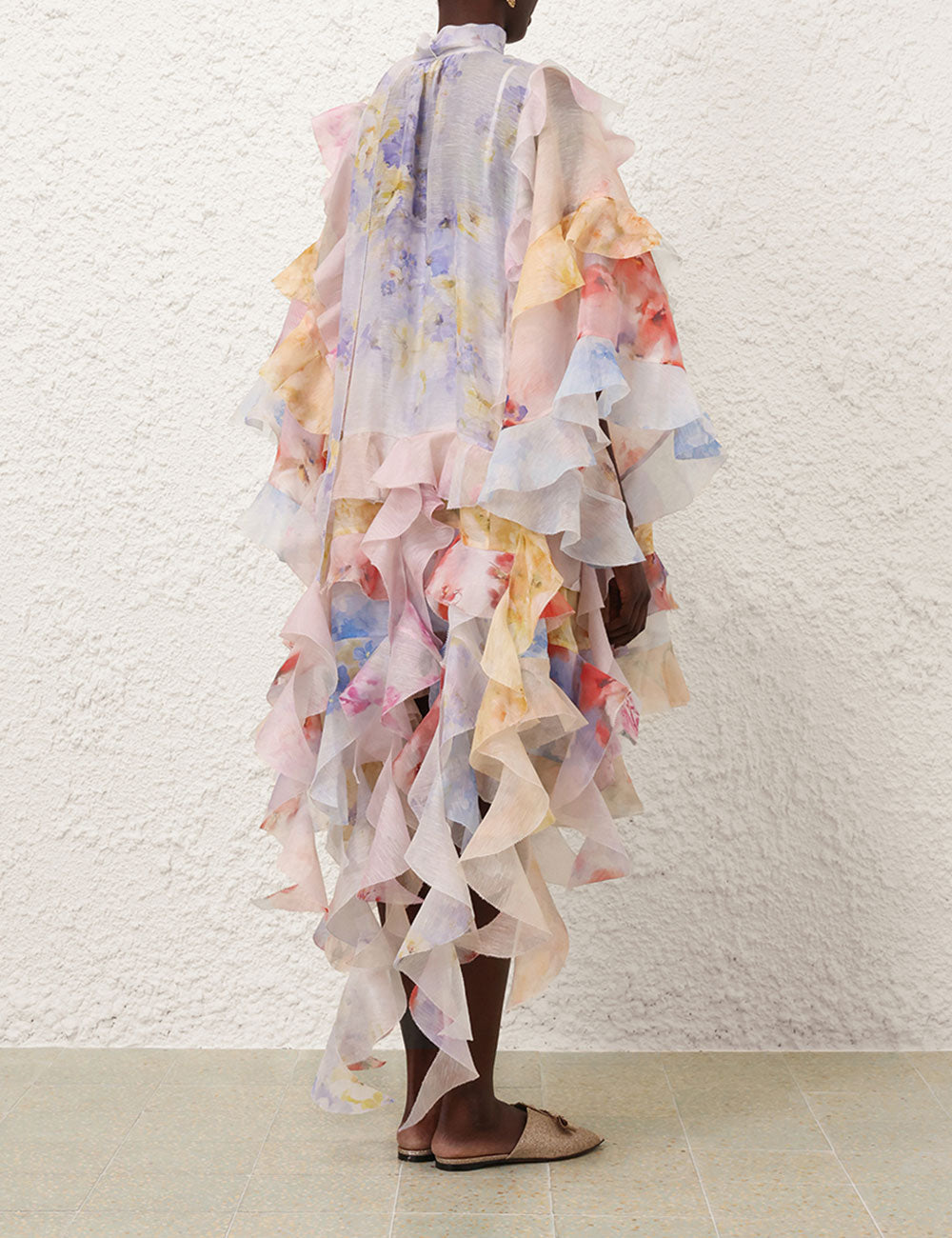 ZIMMERMANN Lucky Plunge Midi Dress Cream/Blue Floral Linen Fabric
