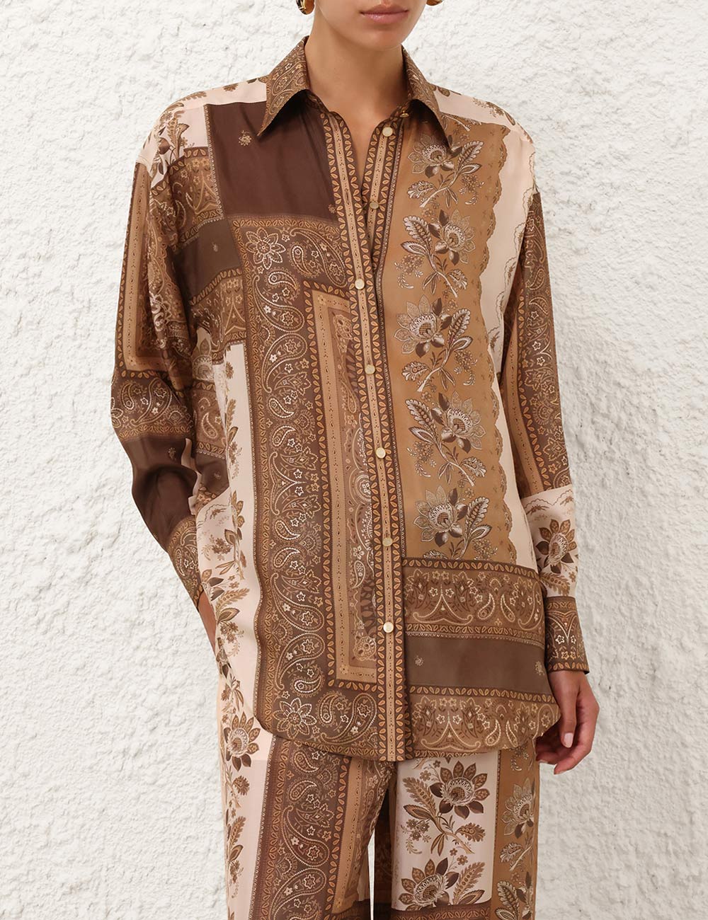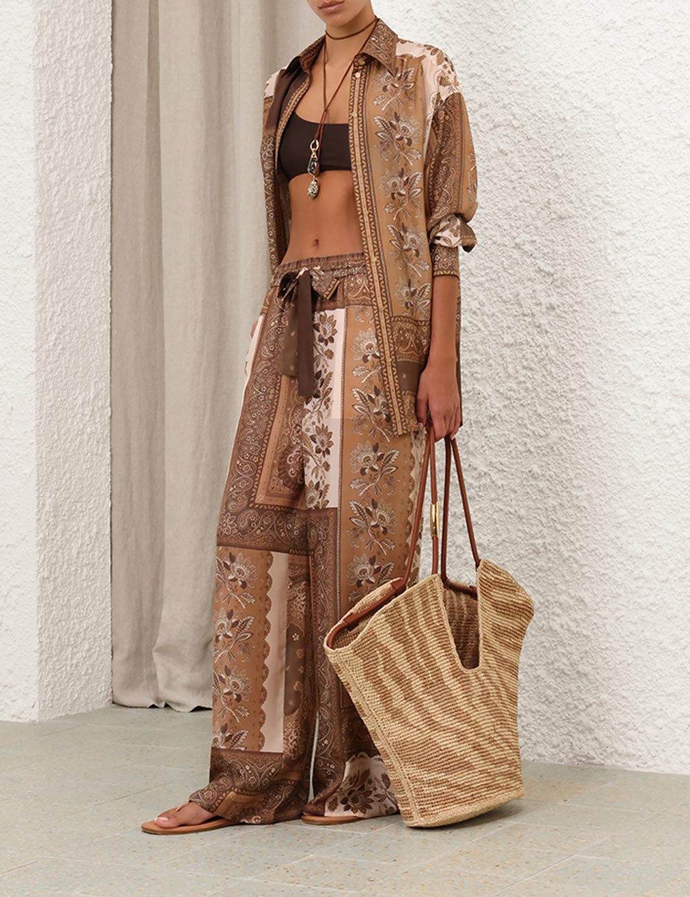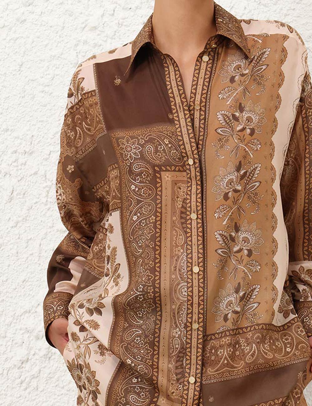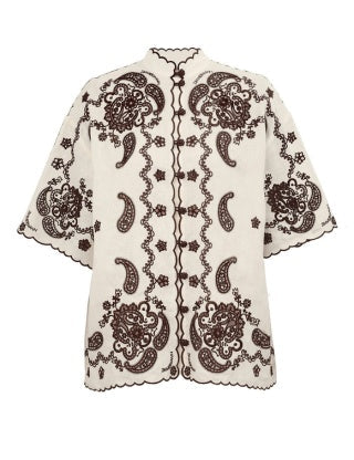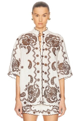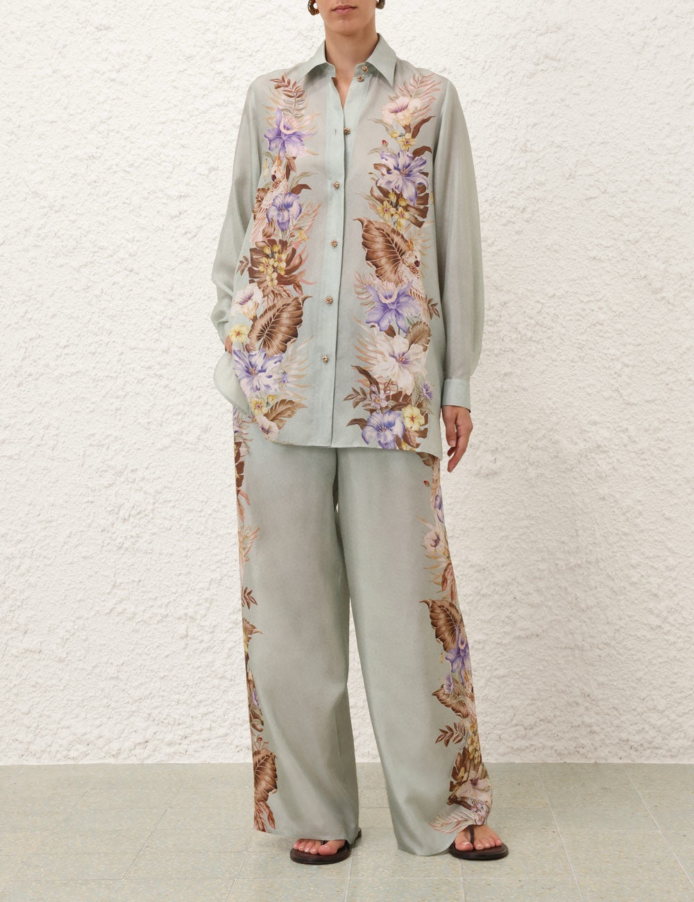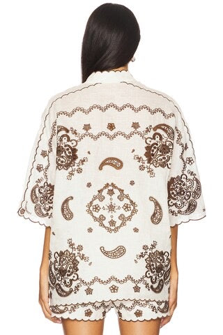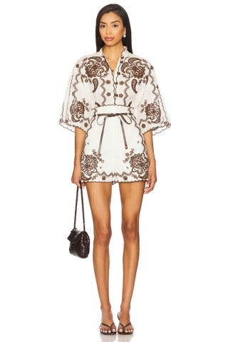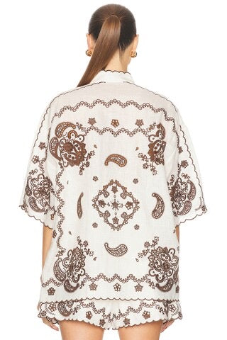 ZIMMERMANN Lucky Plunge Midi Dress Cream/Blue Floral Linen Fabric
