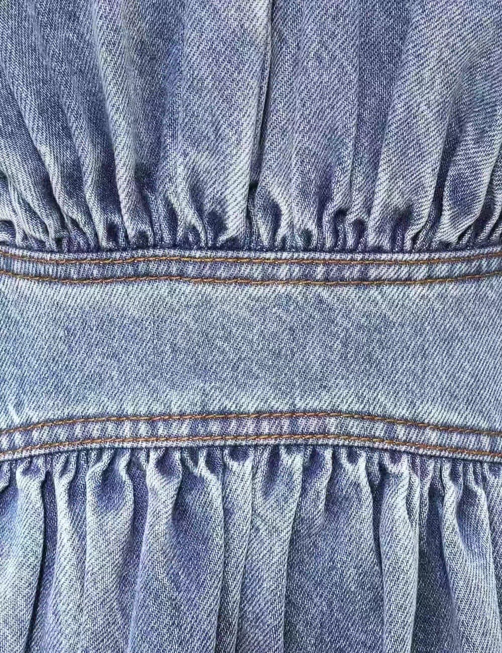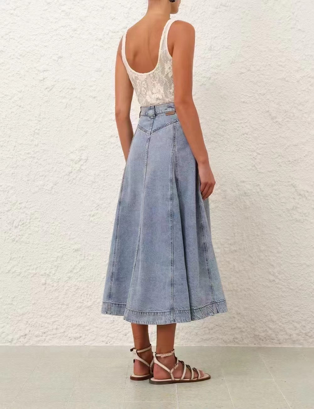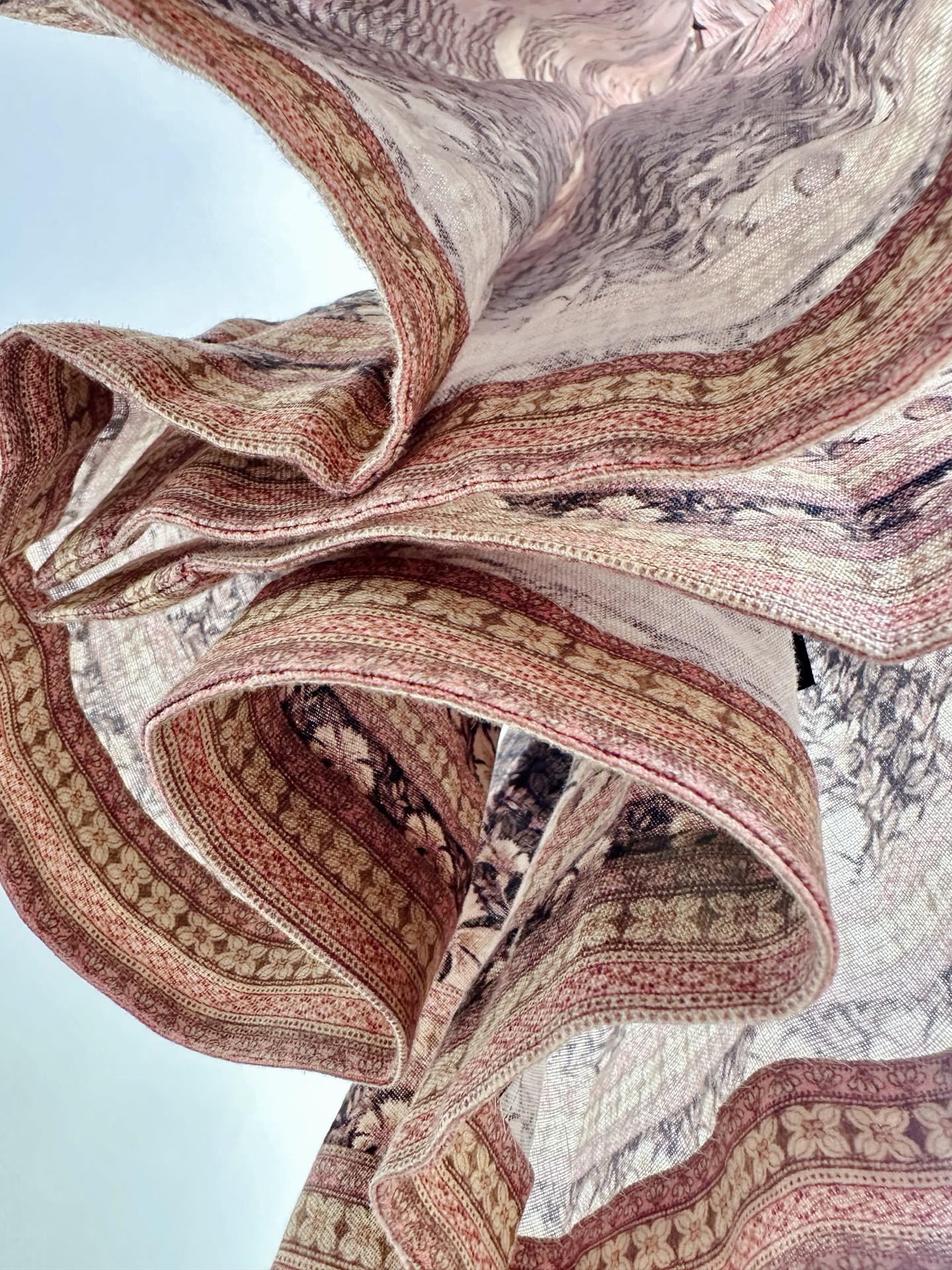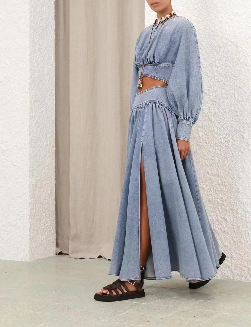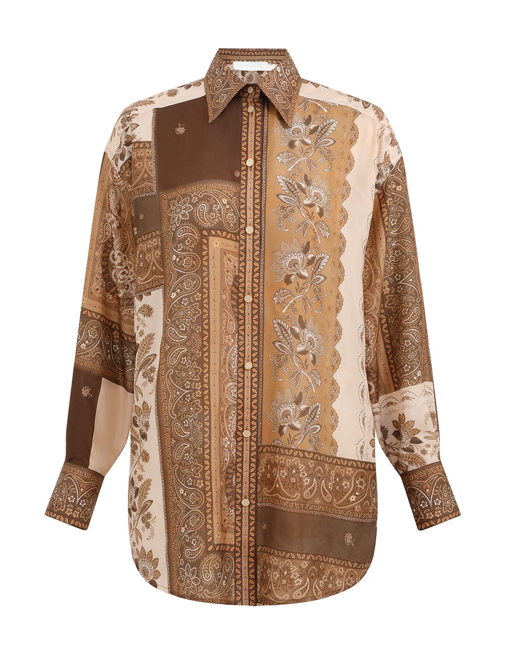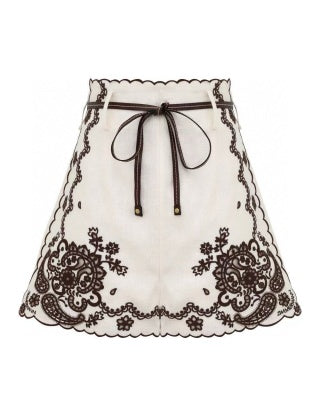 ZIMMERMANN Lucky Plunge Midi Dress Cream/Blue Floral Linen Fabric