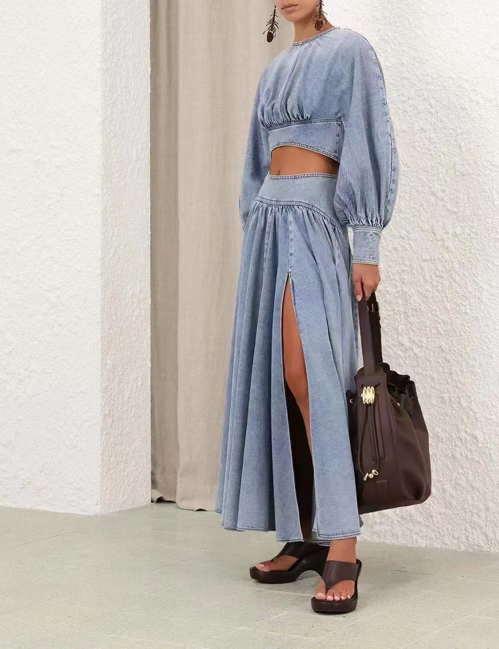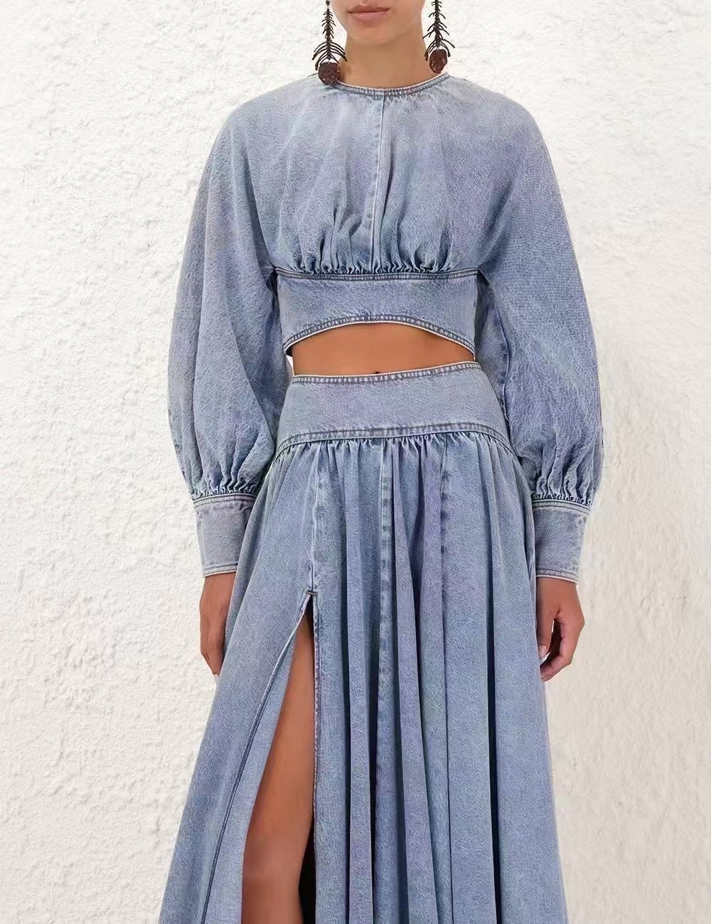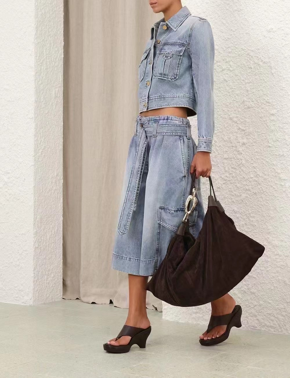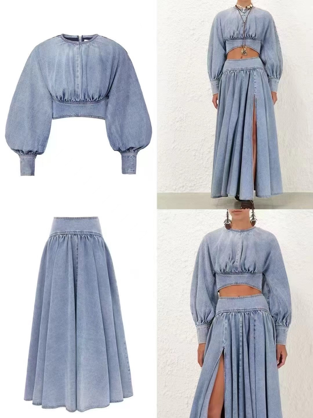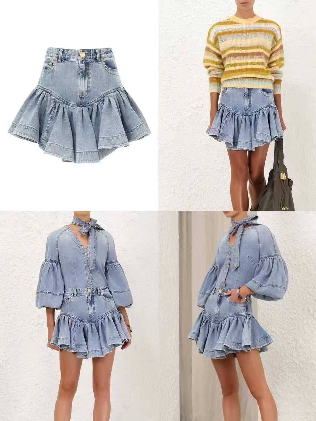ZIMMERMANN Lucky Plunge Midi Dress Cream/Blue Floral Linen Fabric