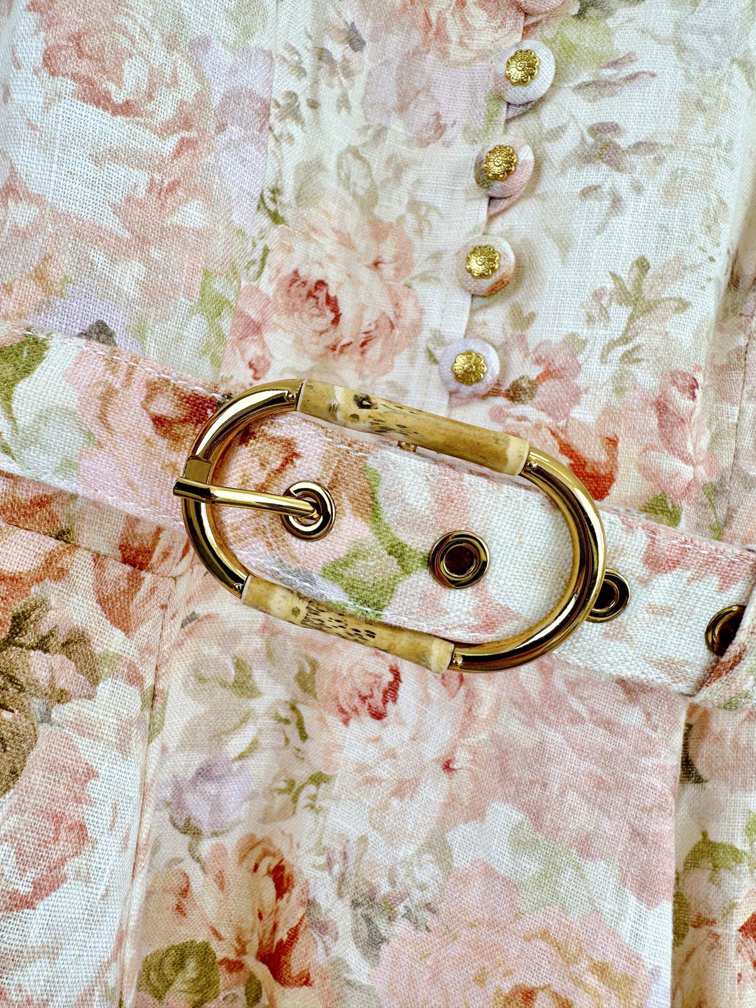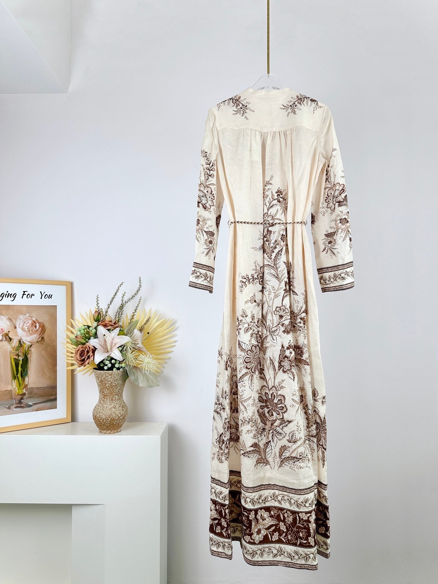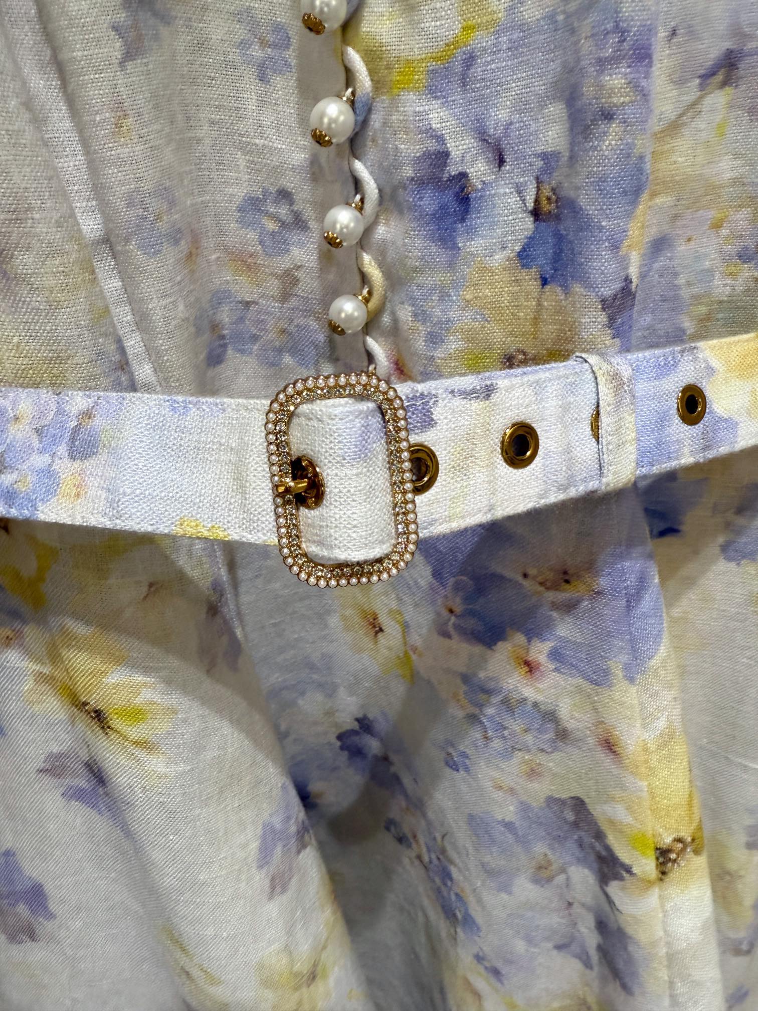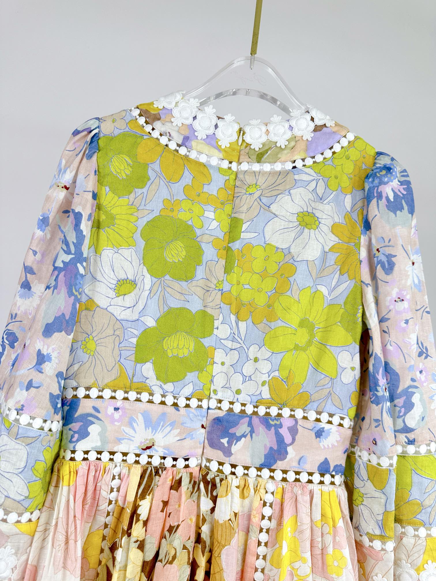 Zimmerman Midi Dress Beige Embroidered with Floral Patterns Cotton 226185