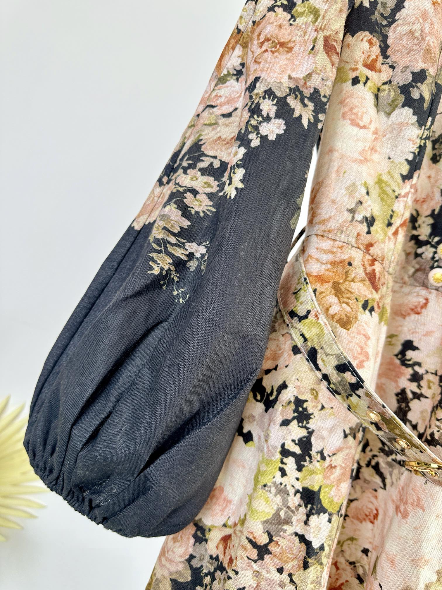 Zimmermann Lllustration Otto Gown Black Beige in Viscose Silk