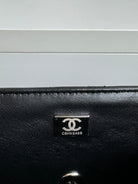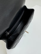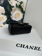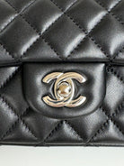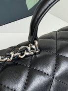 24c mini flap bag 20cm with top handle black calfskin silver hardware