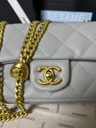 25C Mini Flap 19cm Grey Lambskin Gold Heart Hardware