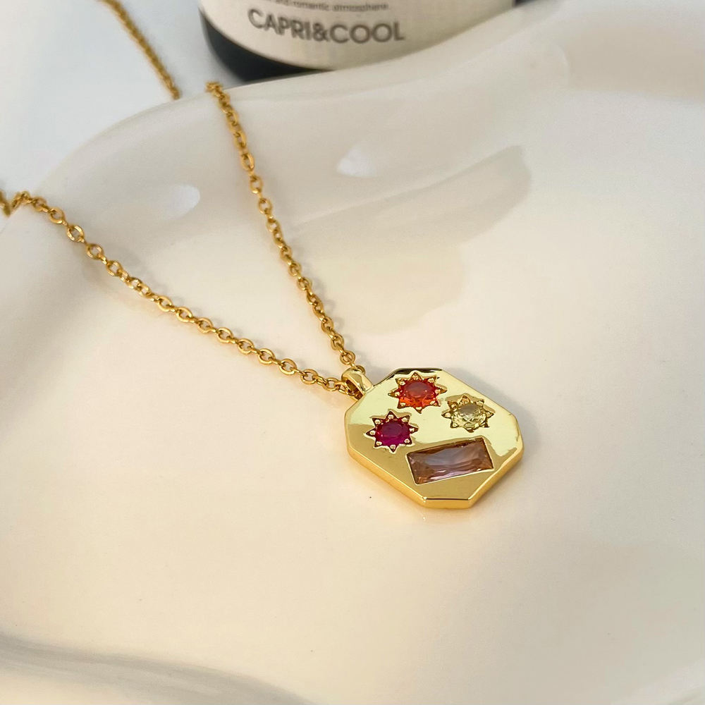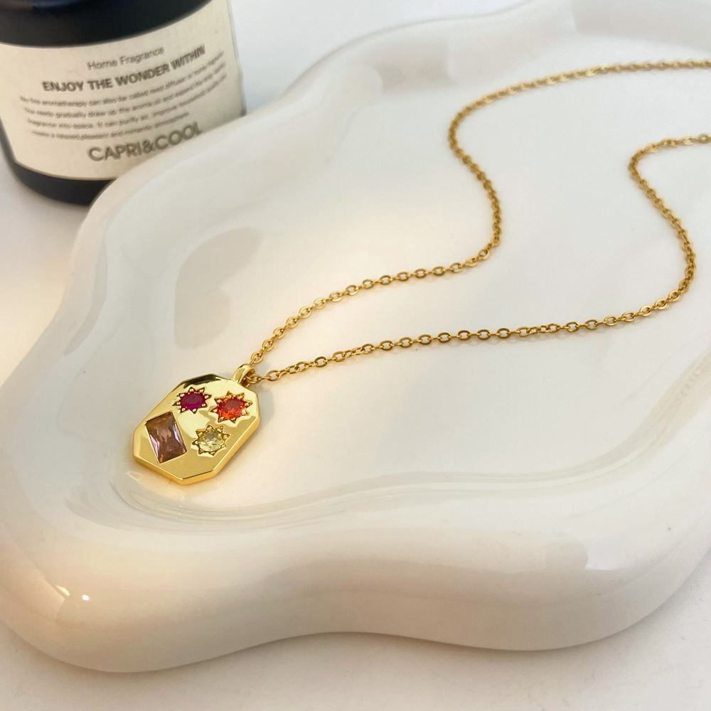 30 MONTAIGNE NECKLACE GOLD-FINISH METAL WHITE CRYSTALS #RSA3050