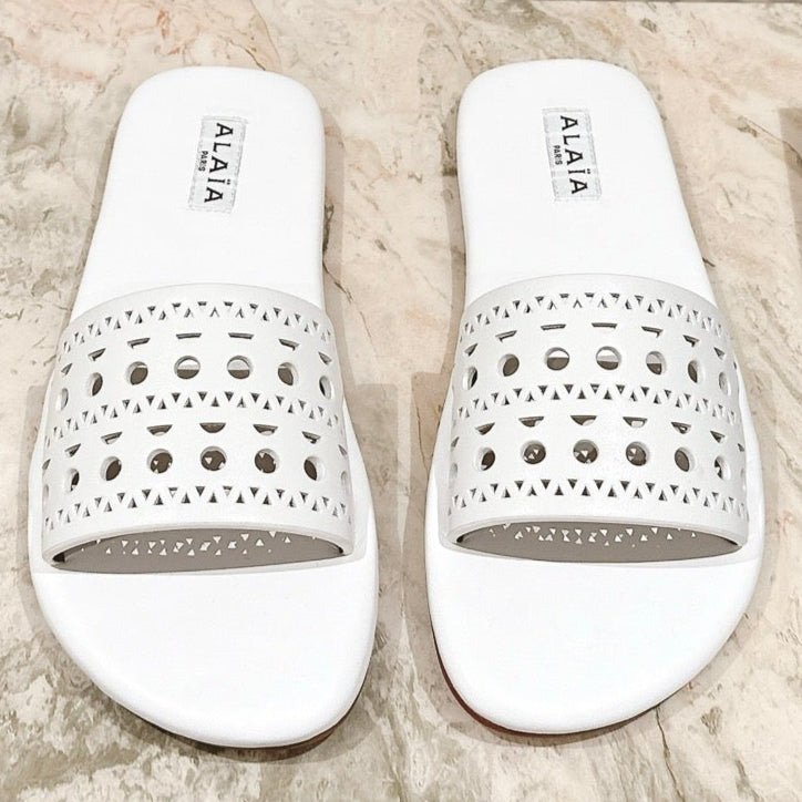 Alaia 2025 Hollow Slippers White Leather 293655