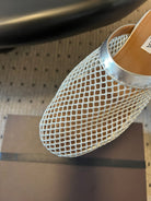 Alaia 25 Fishnet Flat Mules Silver Lampskin 303679
