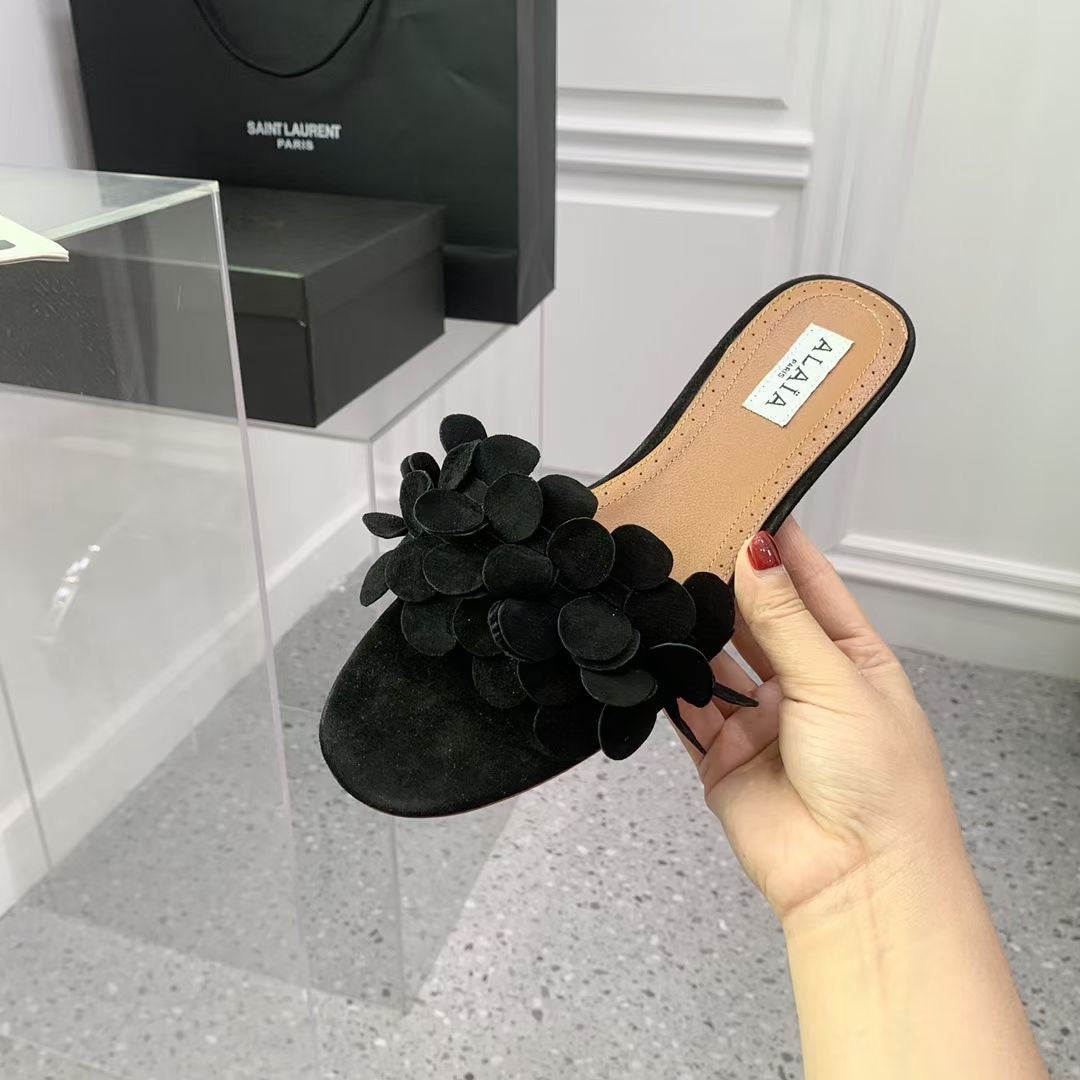 Alaia 25 Flower Slippers Black Sheepskin 293157