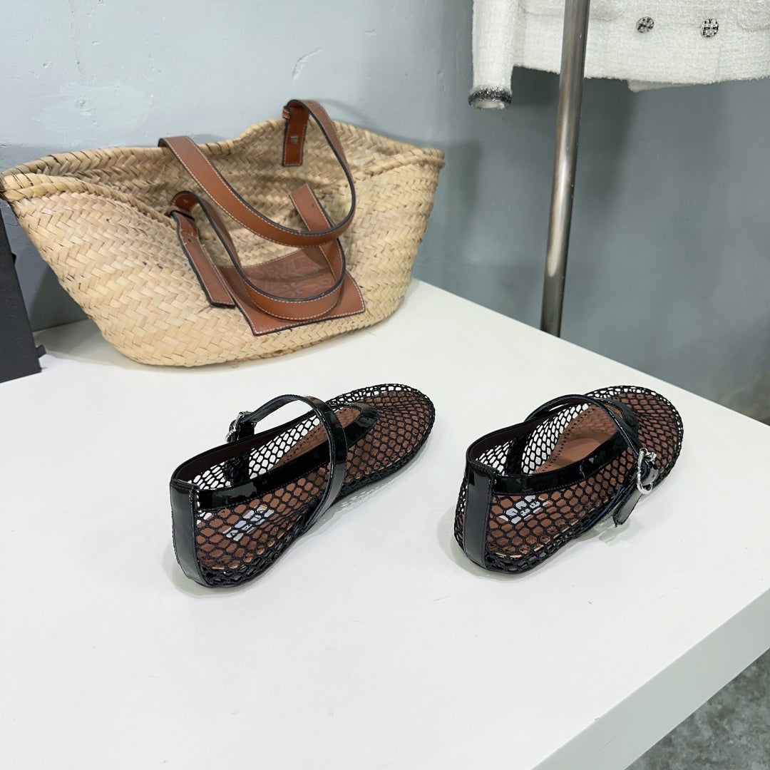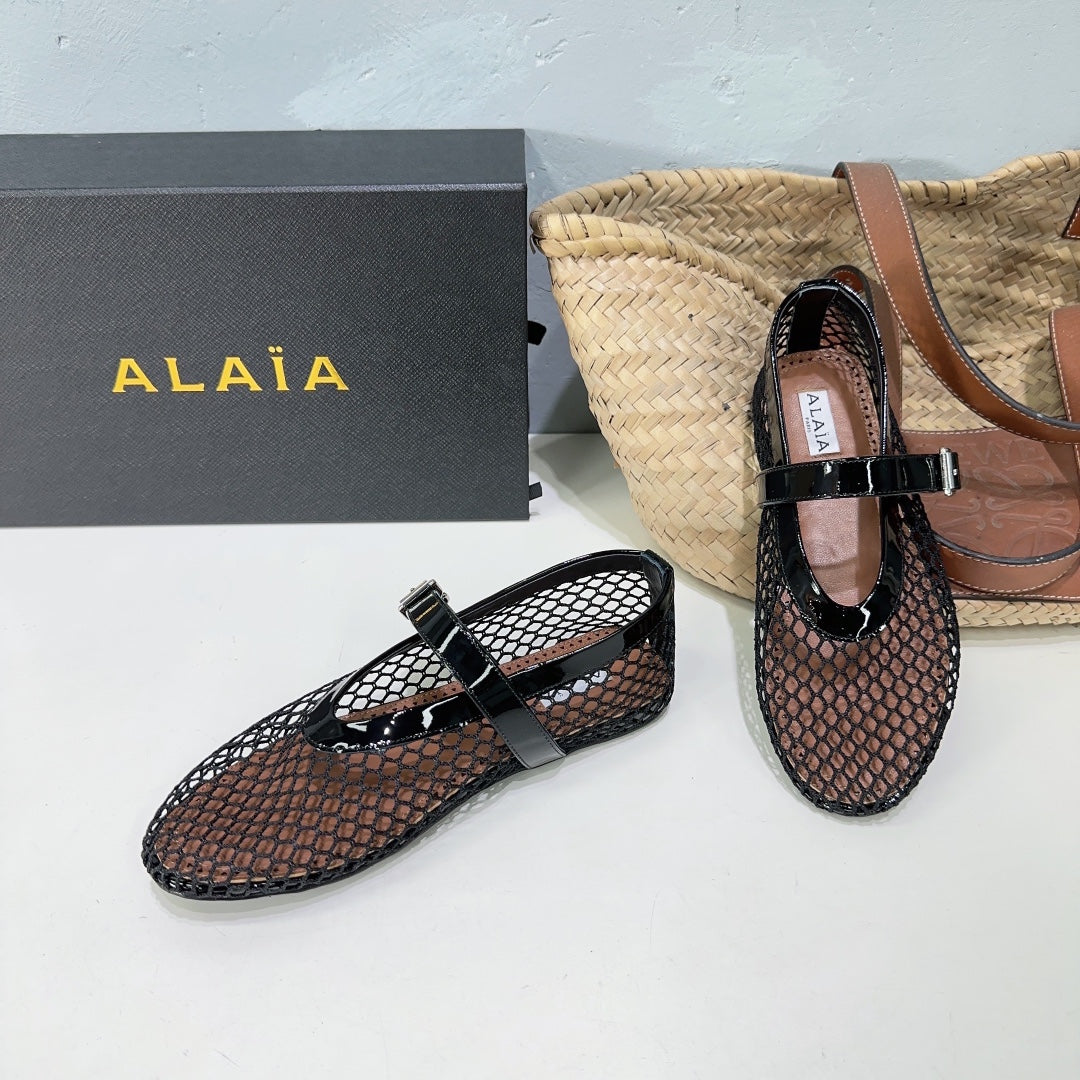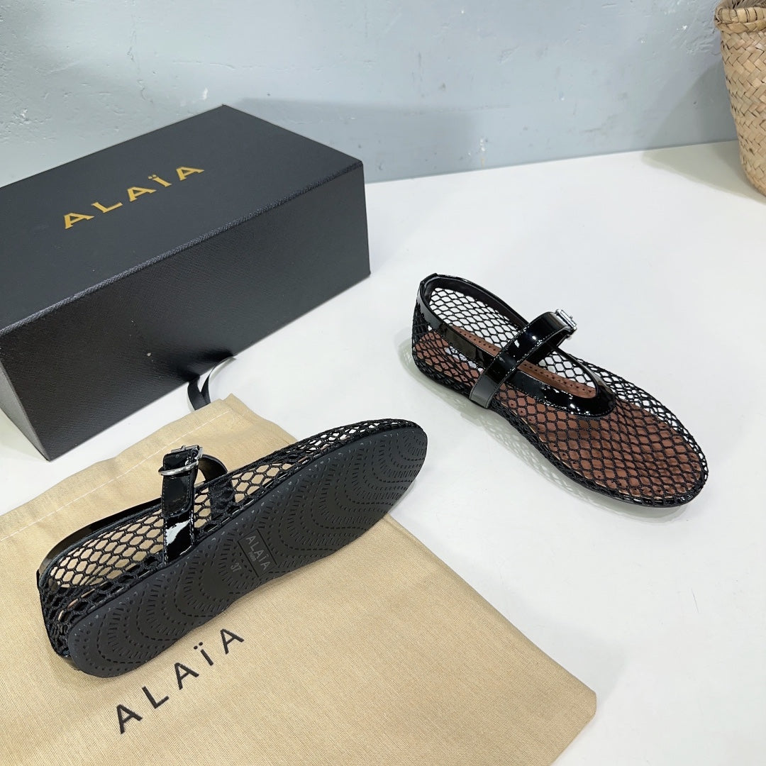 Alaia 25 Laminated Fishnet Ballet Flats Black Lambskin 576444