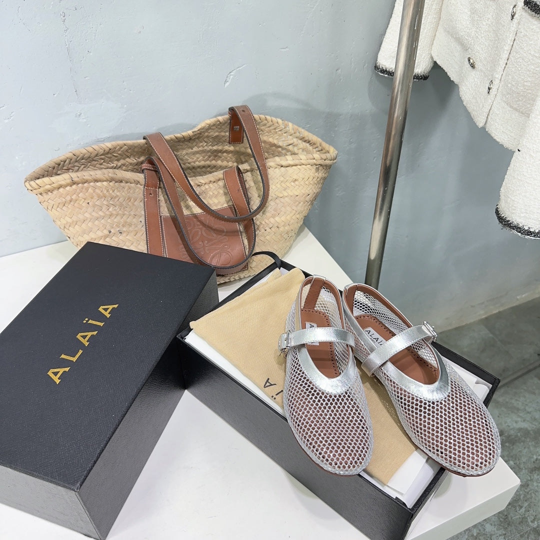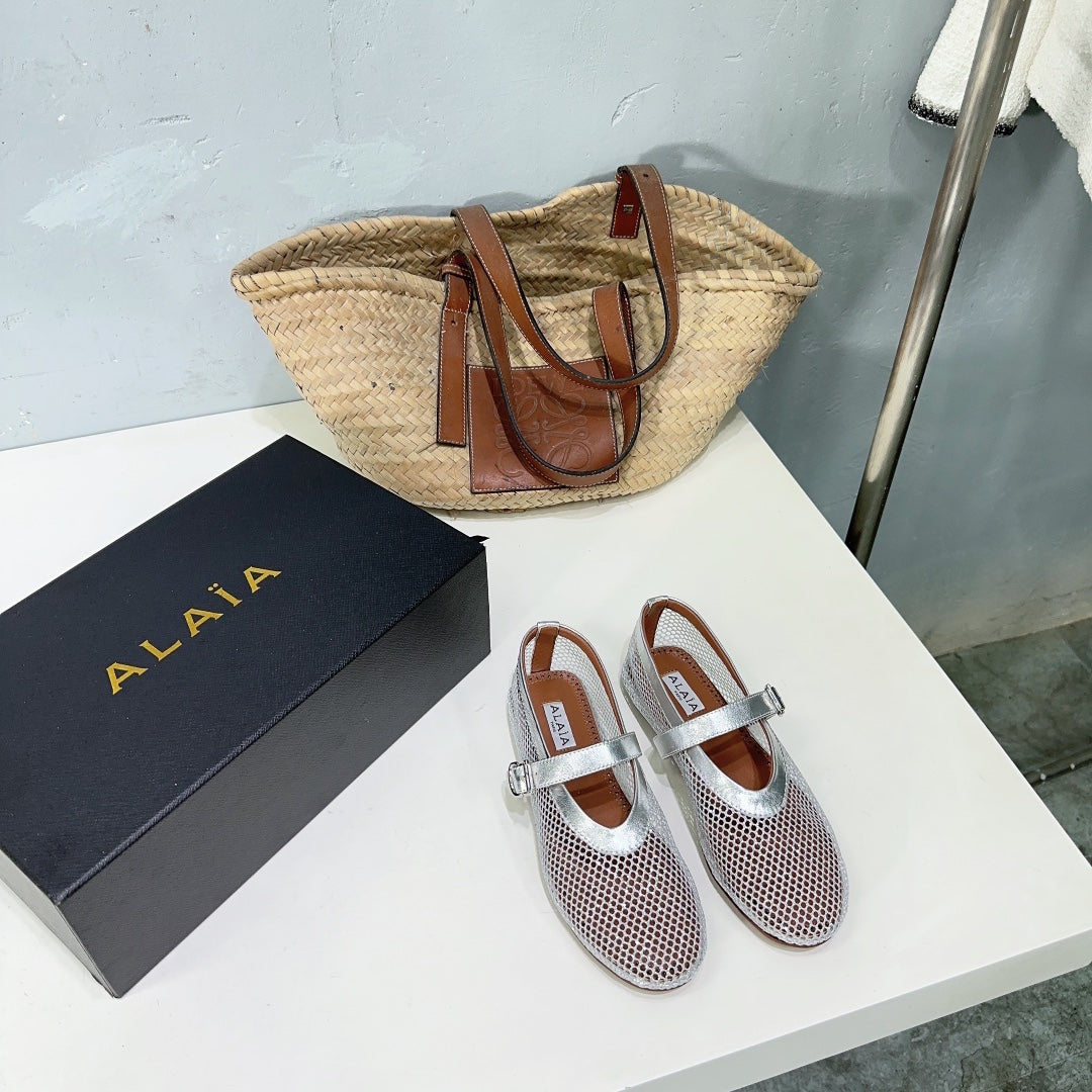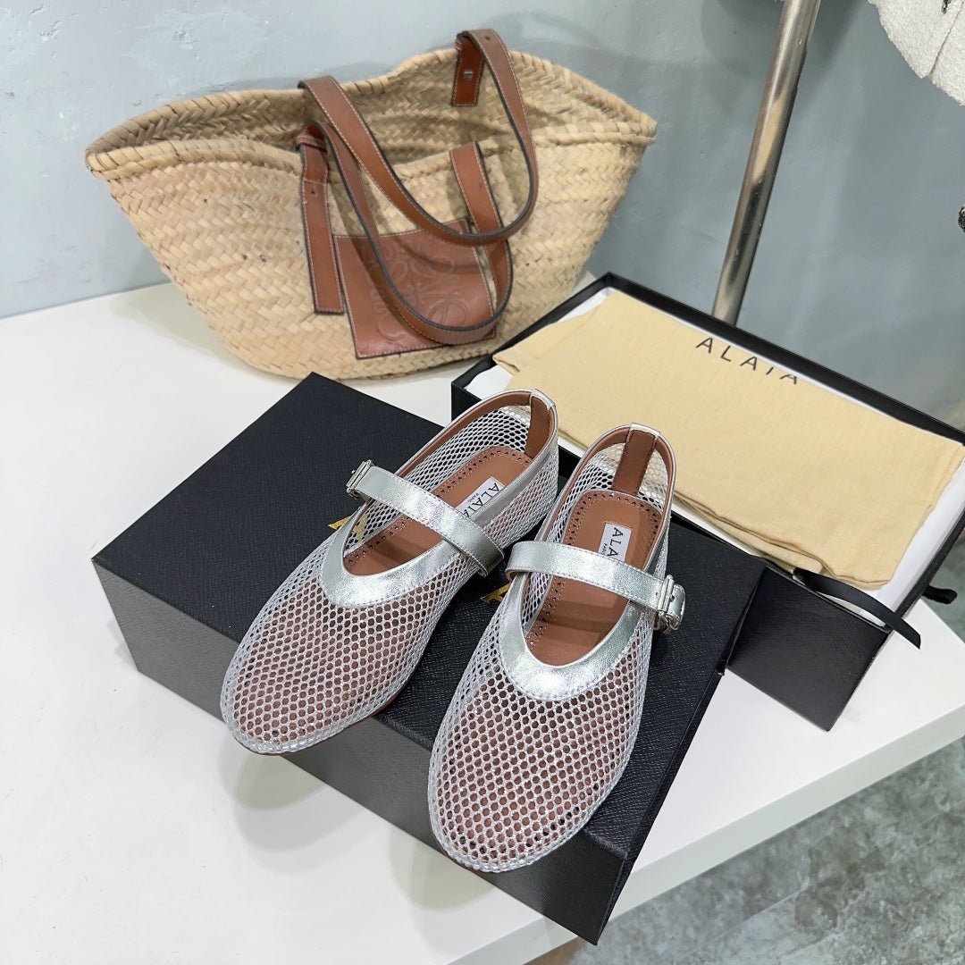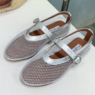 Alaia 25 Laminated Fishnet Ballet Flats Silver Lambskin 677174