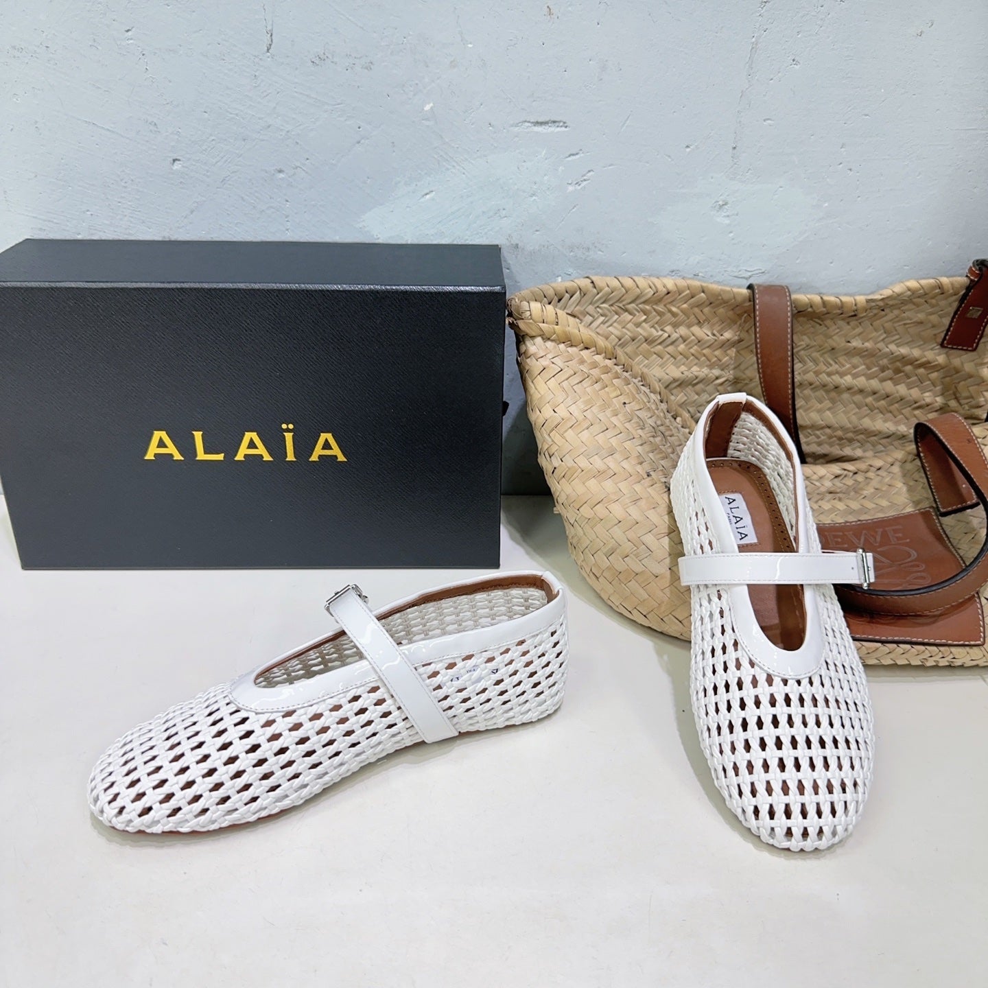 Alaia 25 Marry Janes Ballet Flats White Wool Sheepskin 300455
