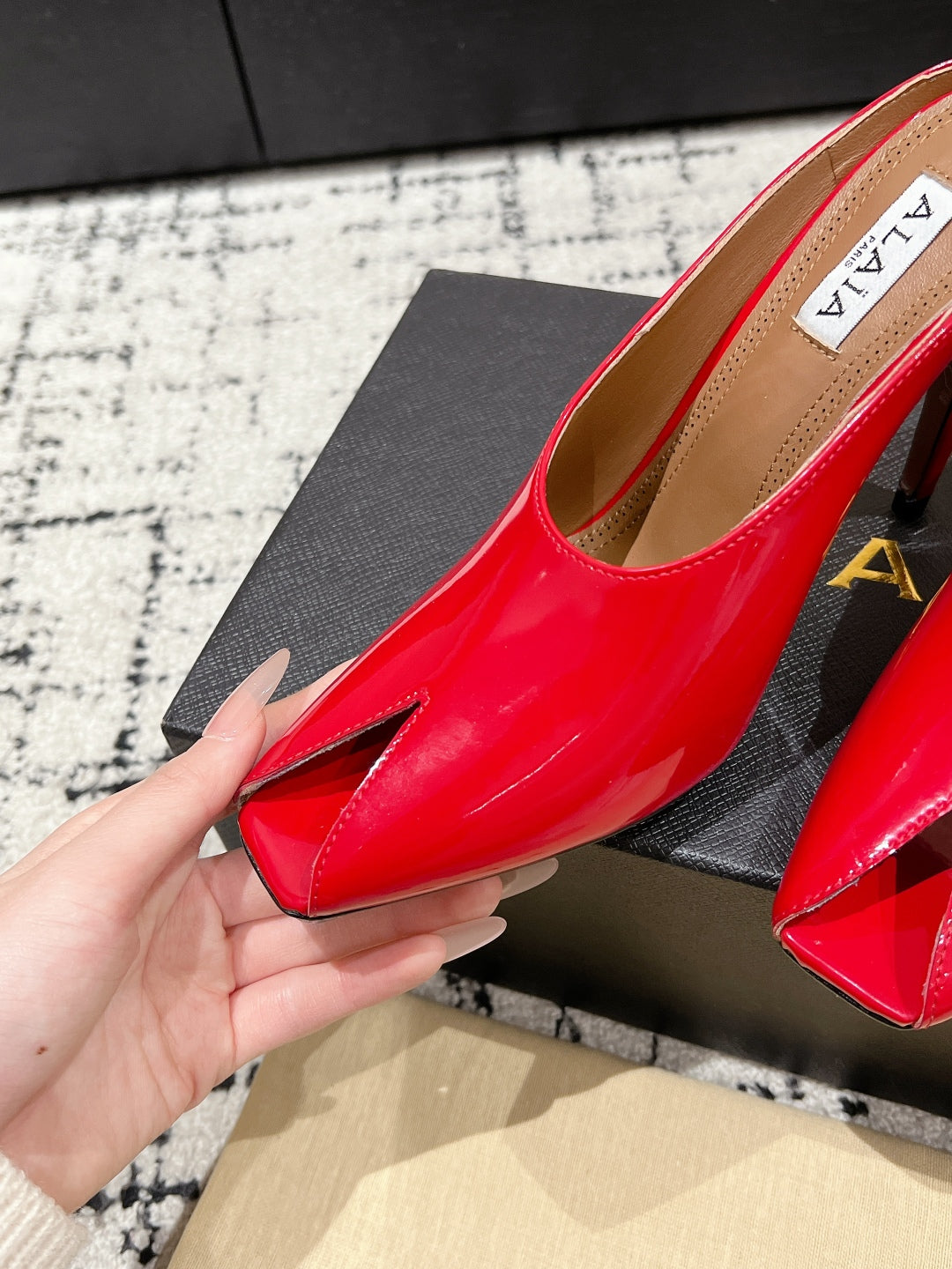 Alaia 25 Spike High Heel Mules Red Lampskin 293183