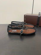 ALAIA BALLET FLATS IN BLACK MESH FISHNET