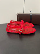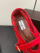 ALAIA BALLET FLATS IN CHERRY RED MESH FISHNET