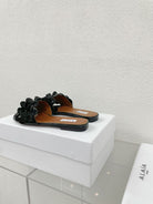 ALAIA FLAT MULE IN BLACK GLOSSY LAMBSKIN