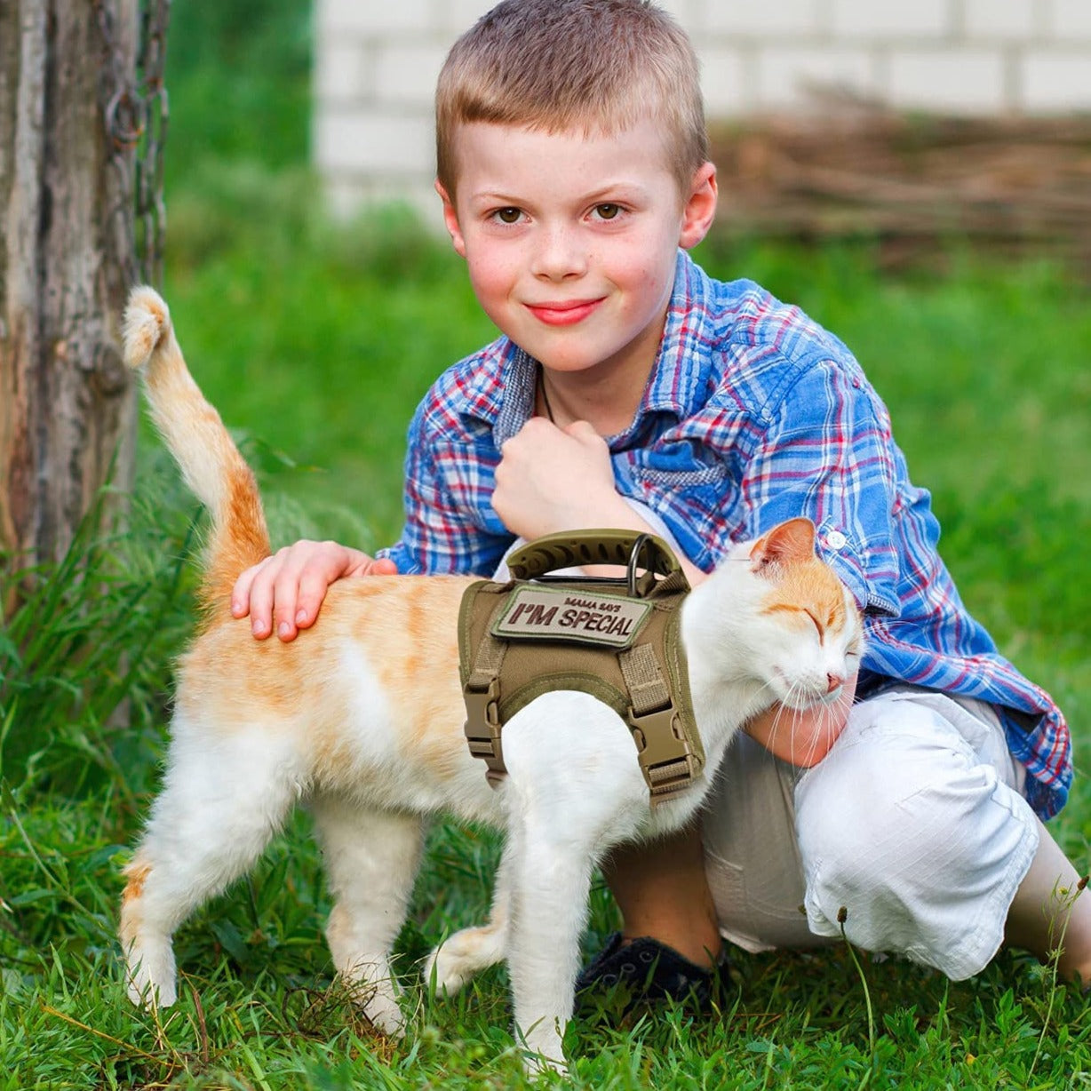Ce n'est pas juste un simple harnais pour chat. C'est un accessoire qui affirme leur personnalité unique. Avec notre gamme de messages accrocheurs au choix, votre chat sera prêt à conquérir le monde. Optez pour le message "I'm Special" pour montrer au monde entier à quel point votre chat est extraordinaire. Ou choisissez le message "Emotional Support" pour offrir à votre compagnon à quatre pattes un soutien émotionnel sans égal.